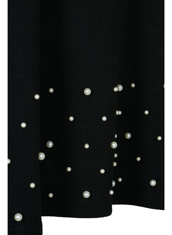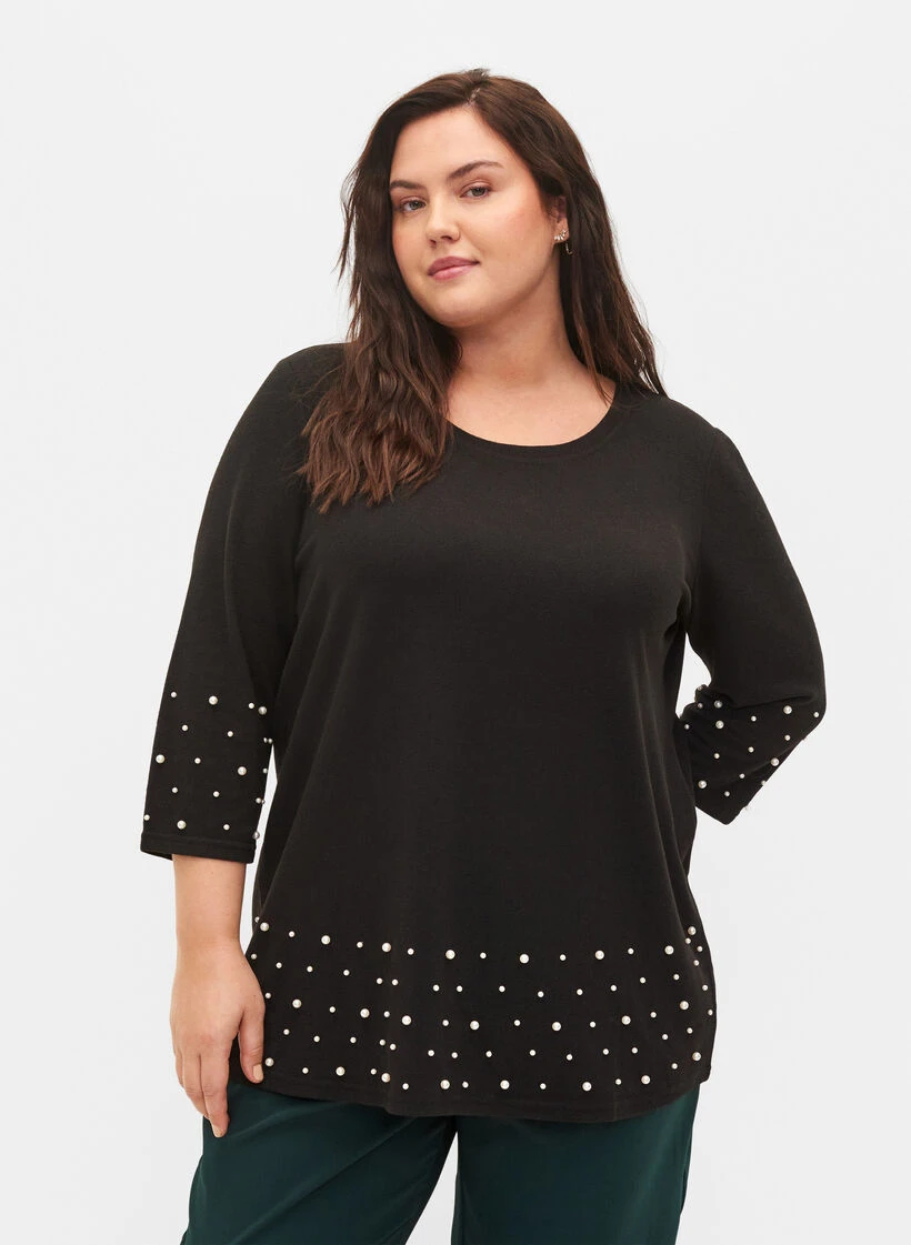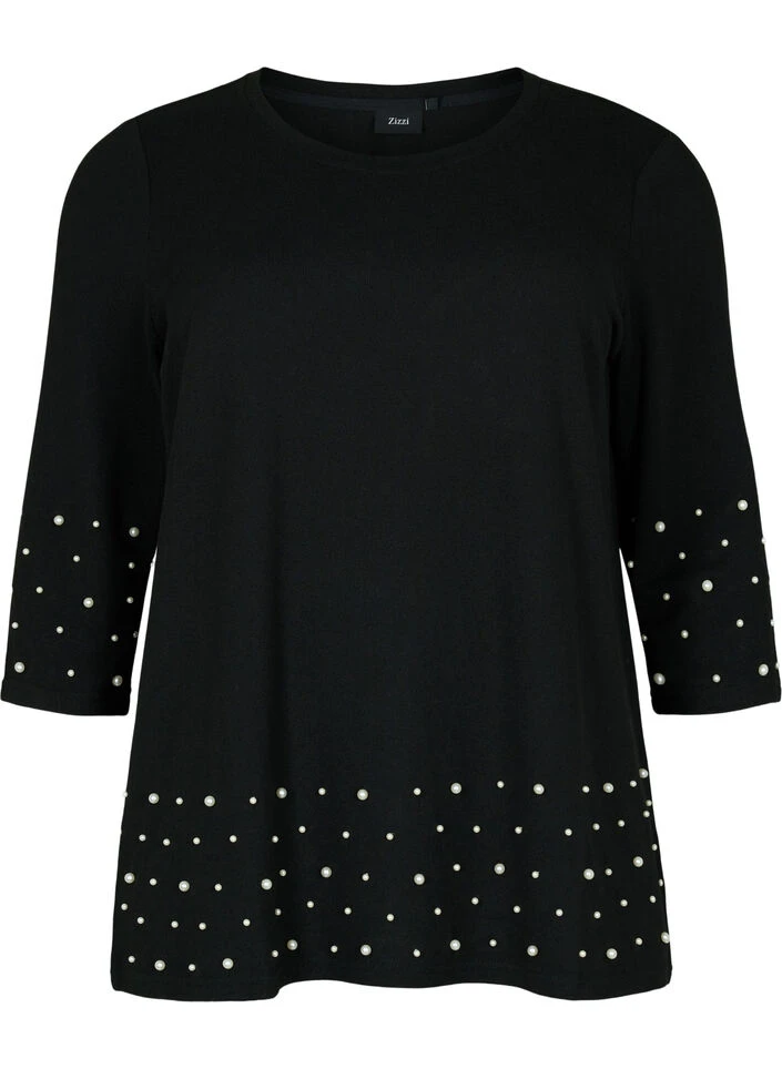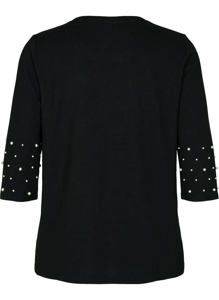 Plain coloured blouse in a simple design with decorative pearl details. The blouse has a round neckline, 3/4 sleeves and a regular fit.