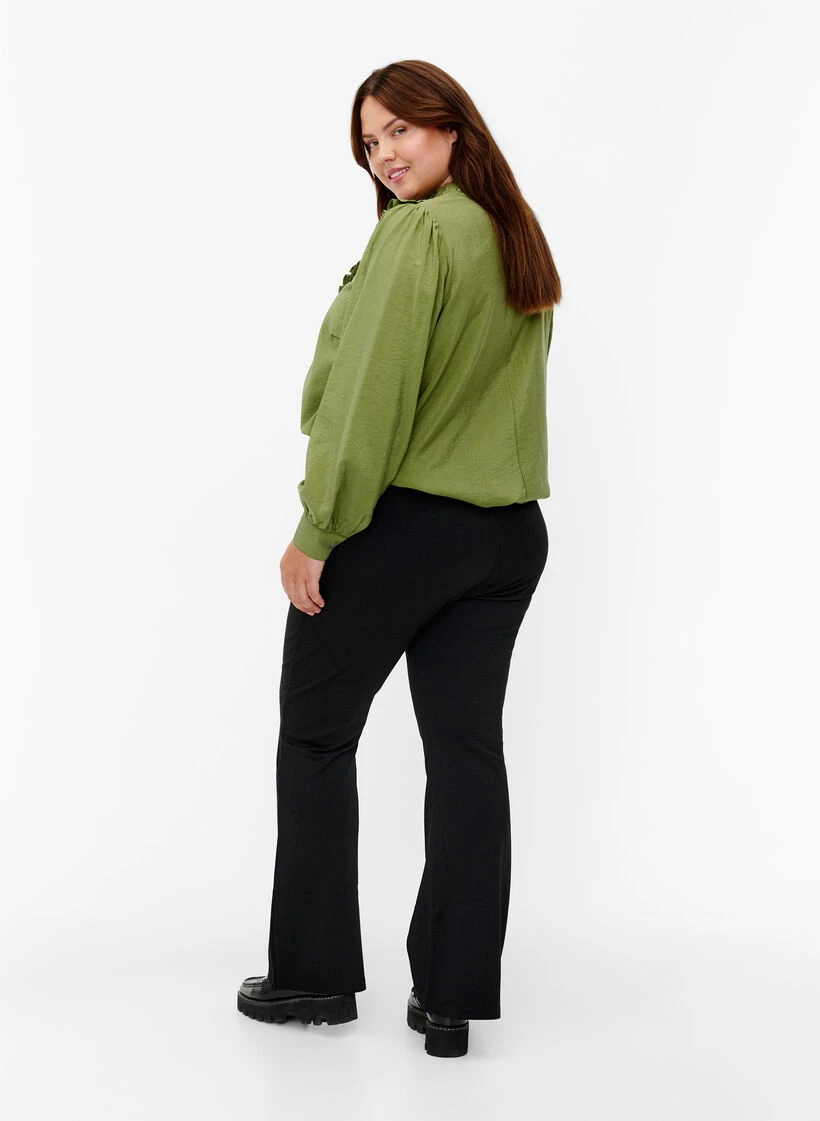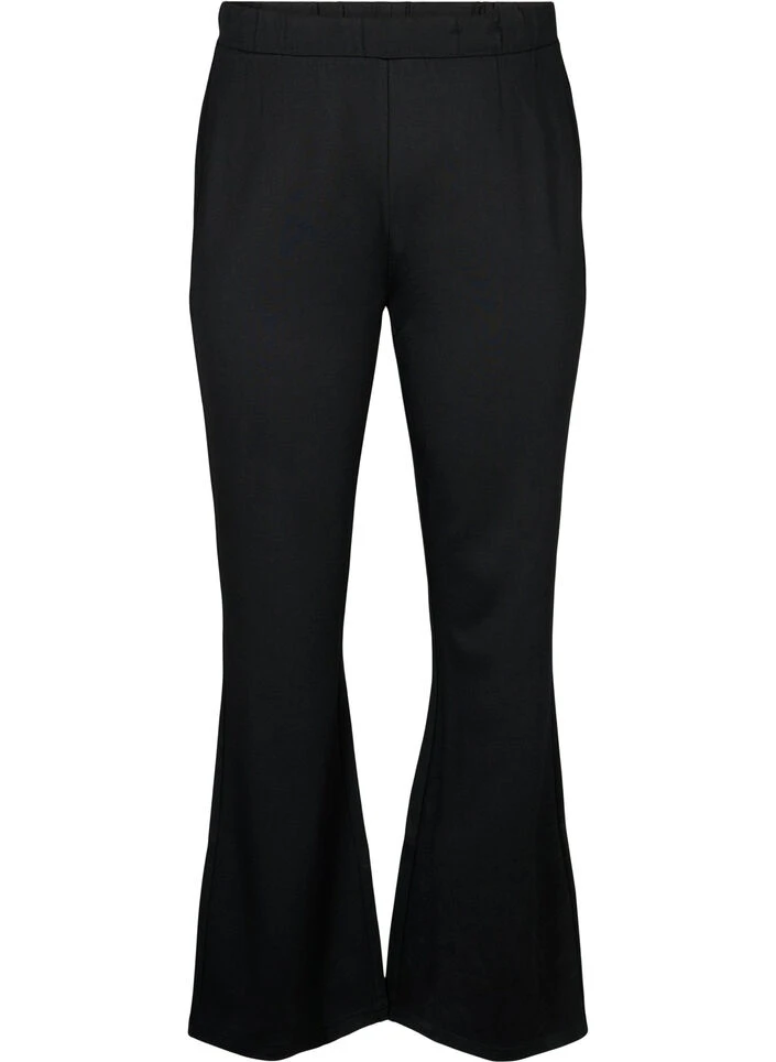 Bootcut trousers in a stretchy viscose blend with an elastic waistband. This model fits tight down to the knee and gets wider from there.