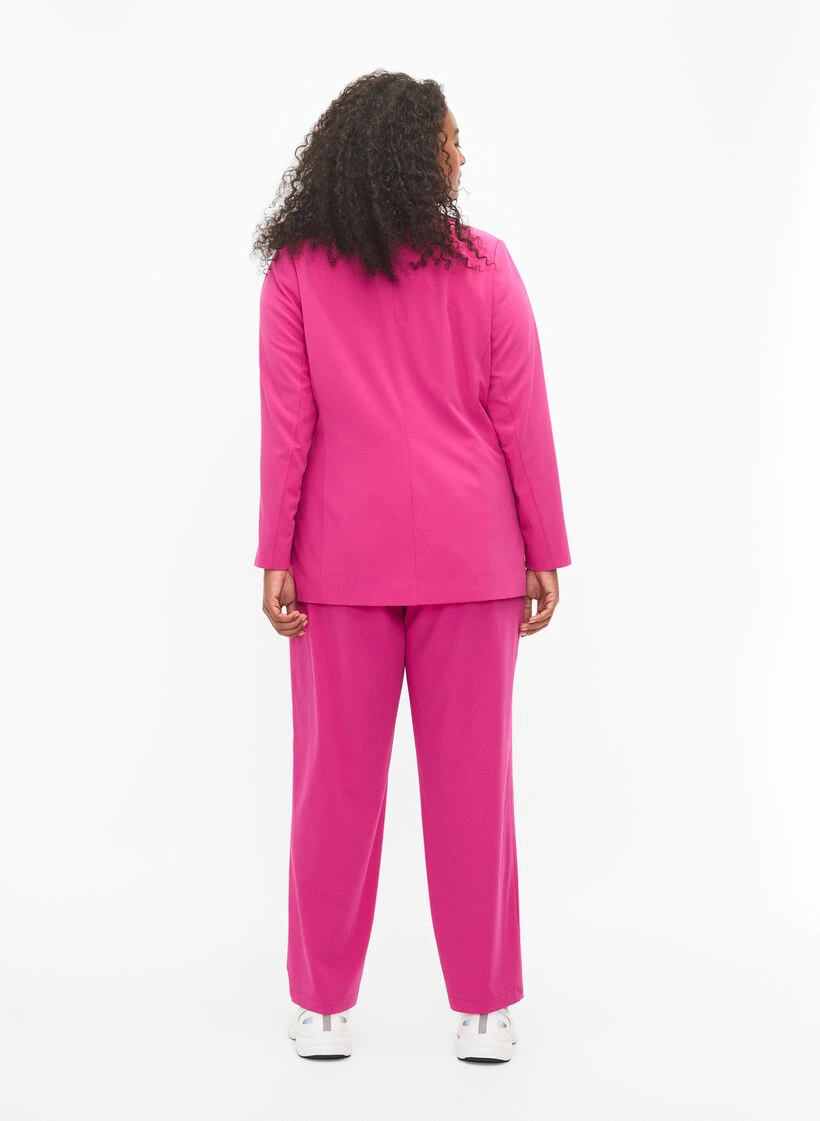 Trousers in a classic and timeless design with side pockets and back pockets without functional pocket lining. The trousers have a straight fit with an elasticated waistband and button fastening at the front.