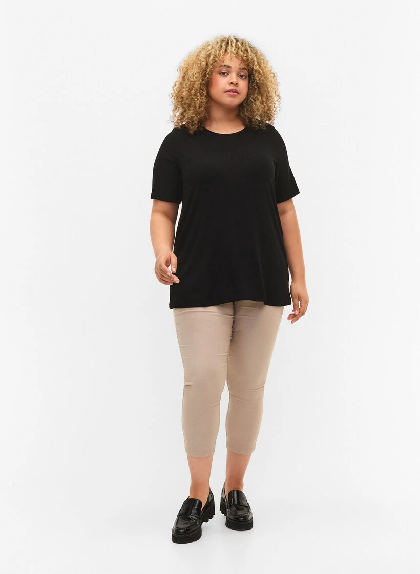 Stylish and simple trousers in a 3/4 length with a tight fit. They are made in a stretchy viscose blend and have classic belt loops as well as decorative zip details.