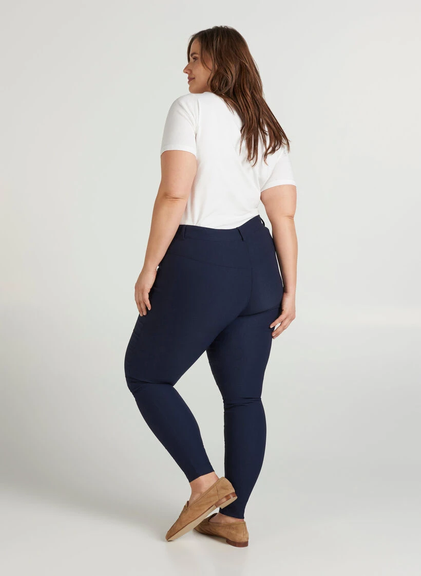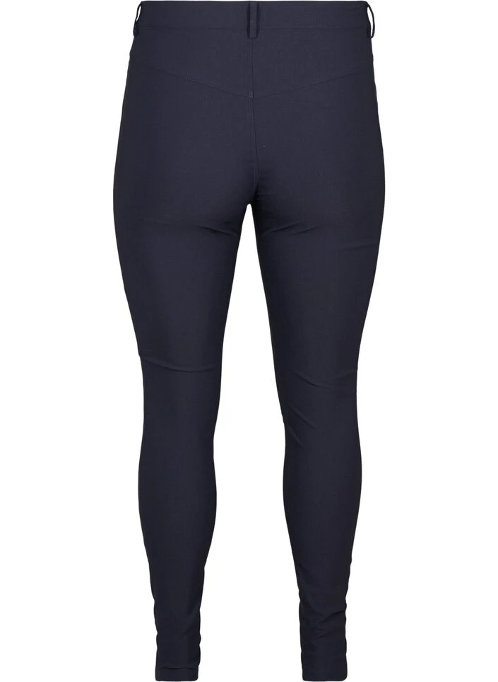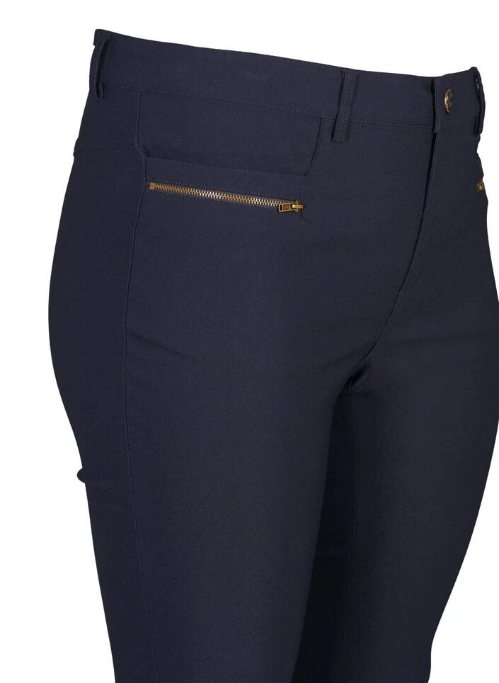 Simple and classic close-fitting trousers. They are made from a stretchy and comfortable material mix, which ensures a comfortable fit. The trousers have an elasticated waist, belt loops, and decorative zip details on the front.