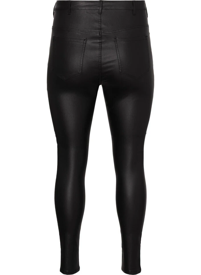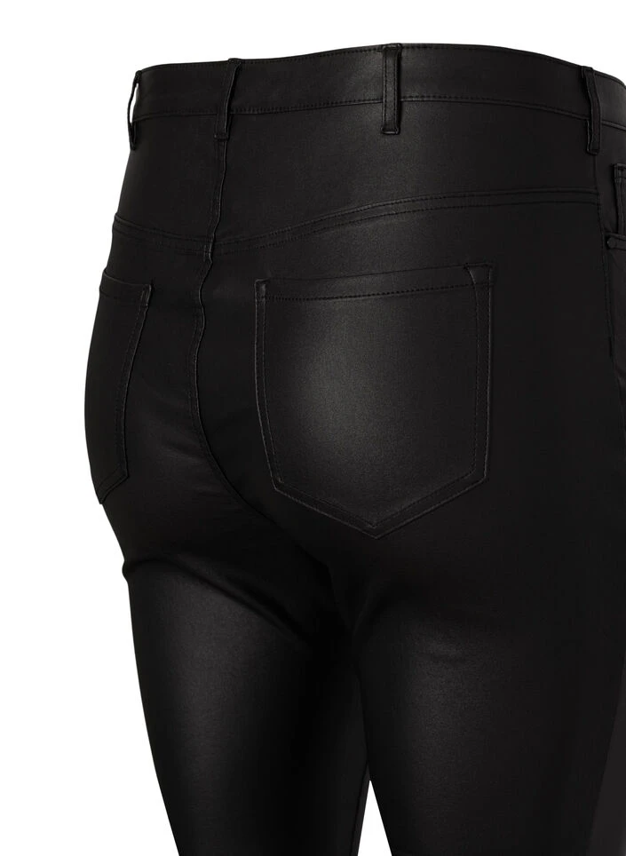 Coated jeans with trendy zipper detail, high waist and super slim fit. These jeans are stretchy and have pockets, belt loops and close with a zipper and button.