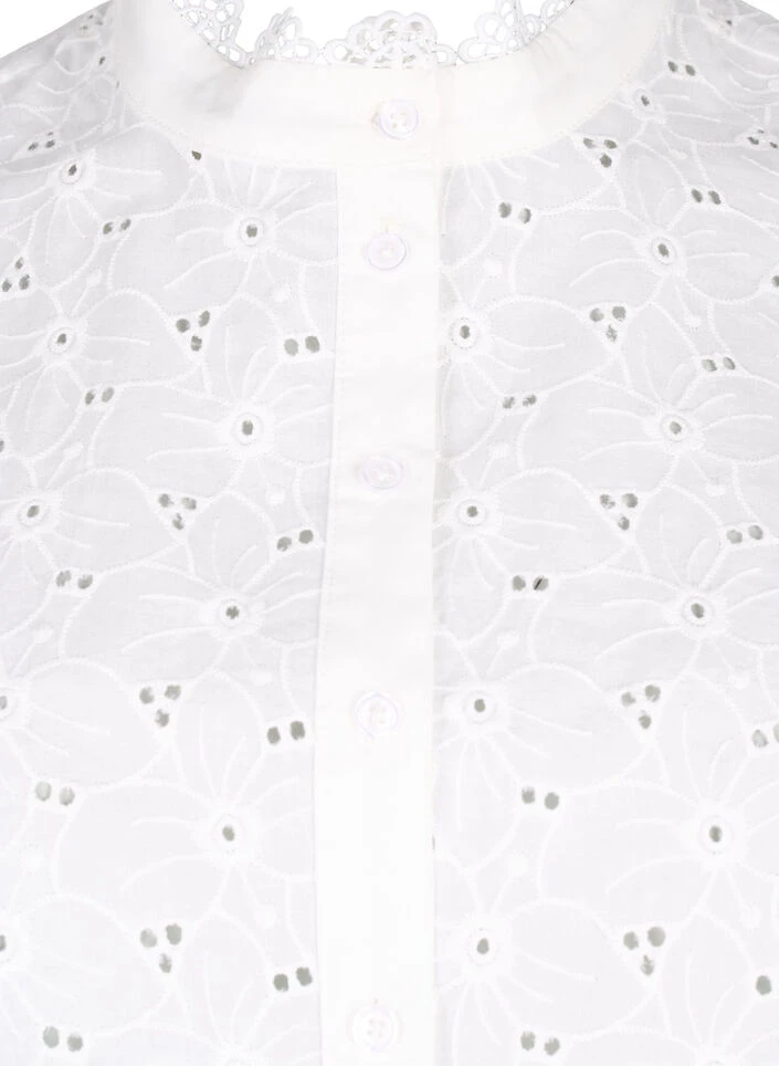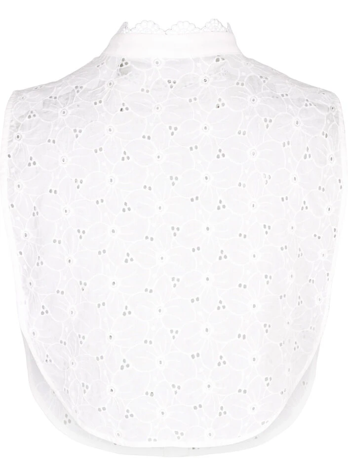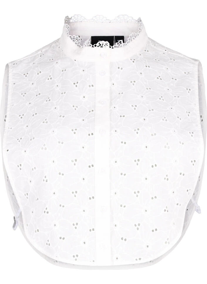 Loose shirt collar with beautiful embroidery anglaise and lace details. The collar is made from 100% cotton and fastens with a button closure at the front.