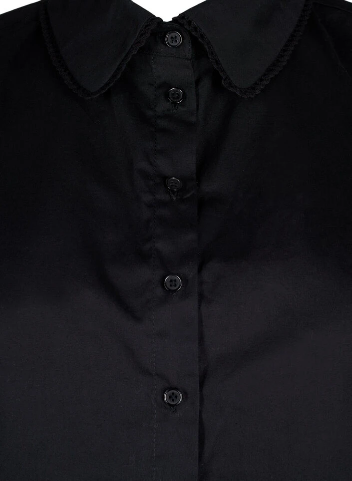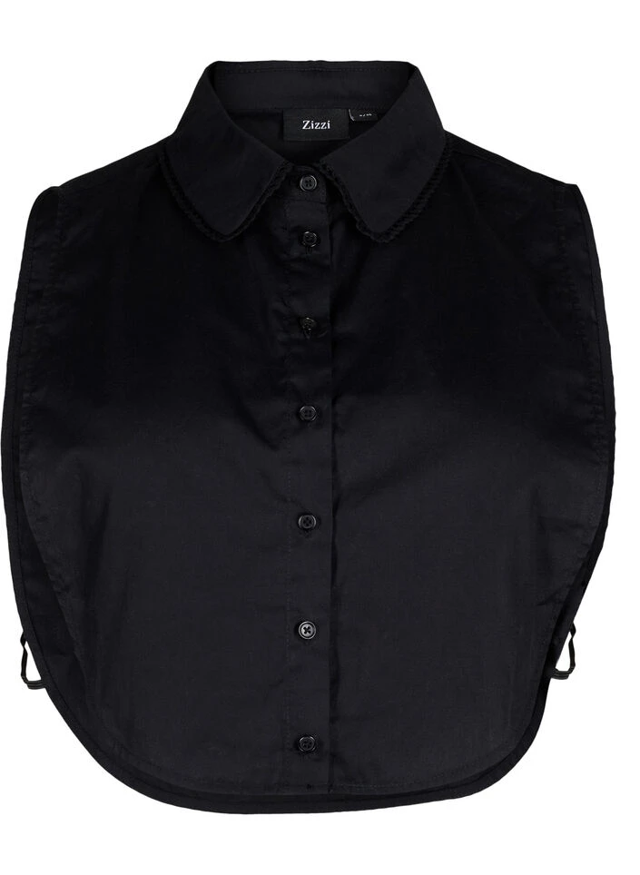 Loose shirt collar in 100% cotton. The collar is designed with a lace band and button closure at the front, and can be worn under knitwear or a blouse for a trendy look.
