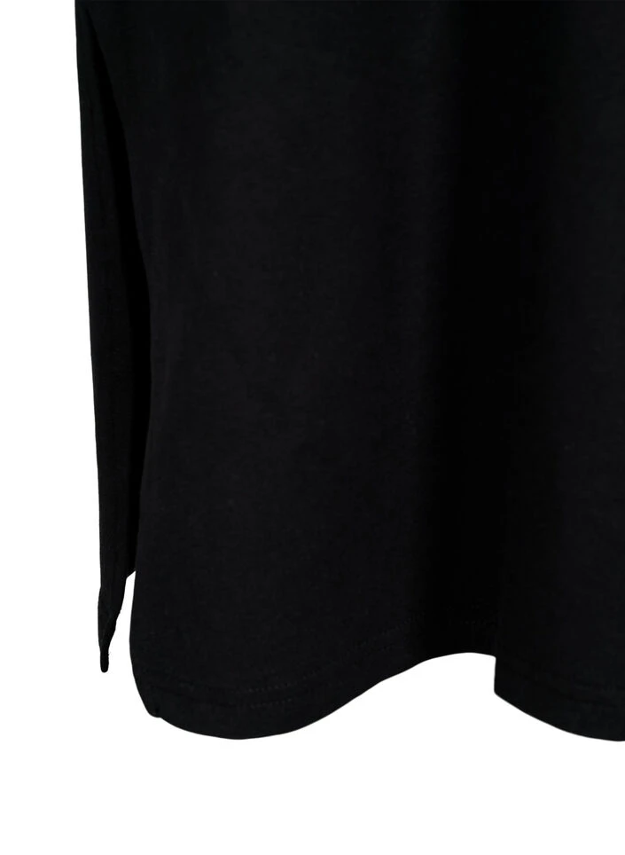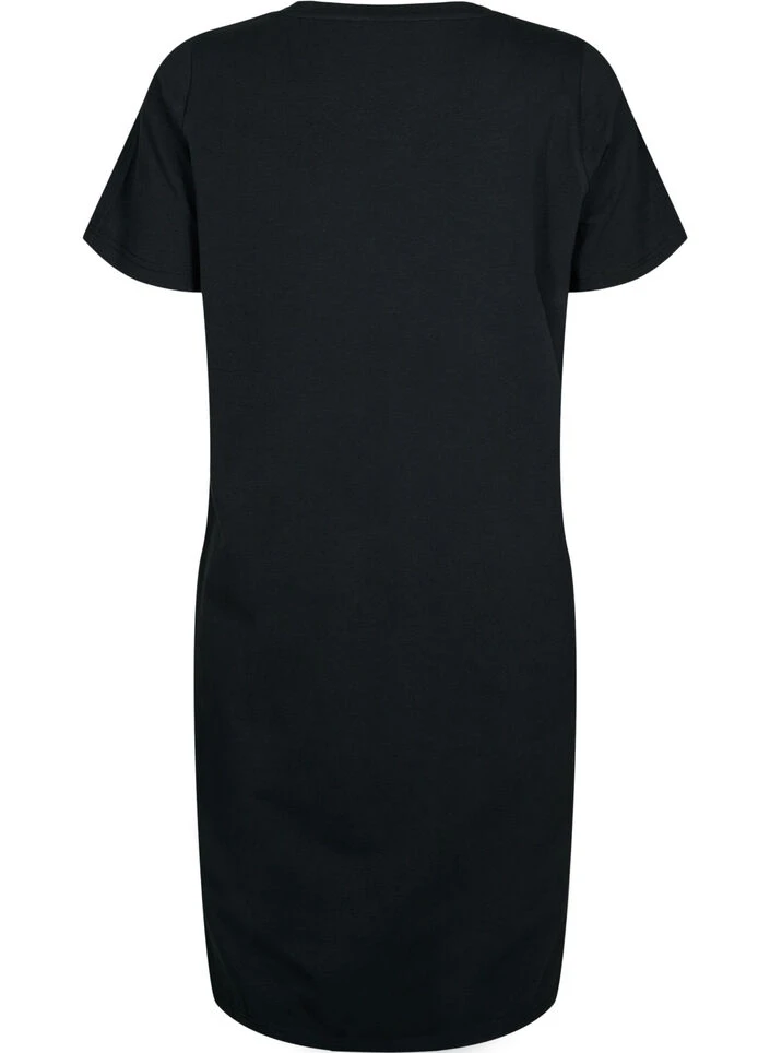 Loose cotton dress with short sleeves, round neckline and slit in the side.