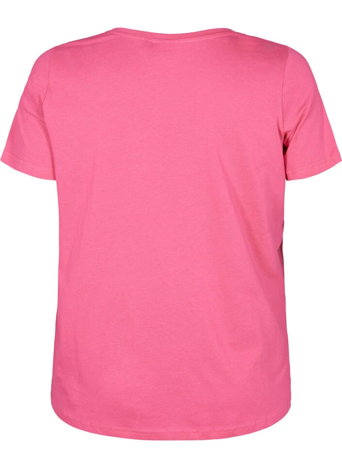 Short sleeve night t-shirt with print on chest. The t-shirt has a v-neckline, a loose fit and is made in soft cotton with 50% organic cotton.