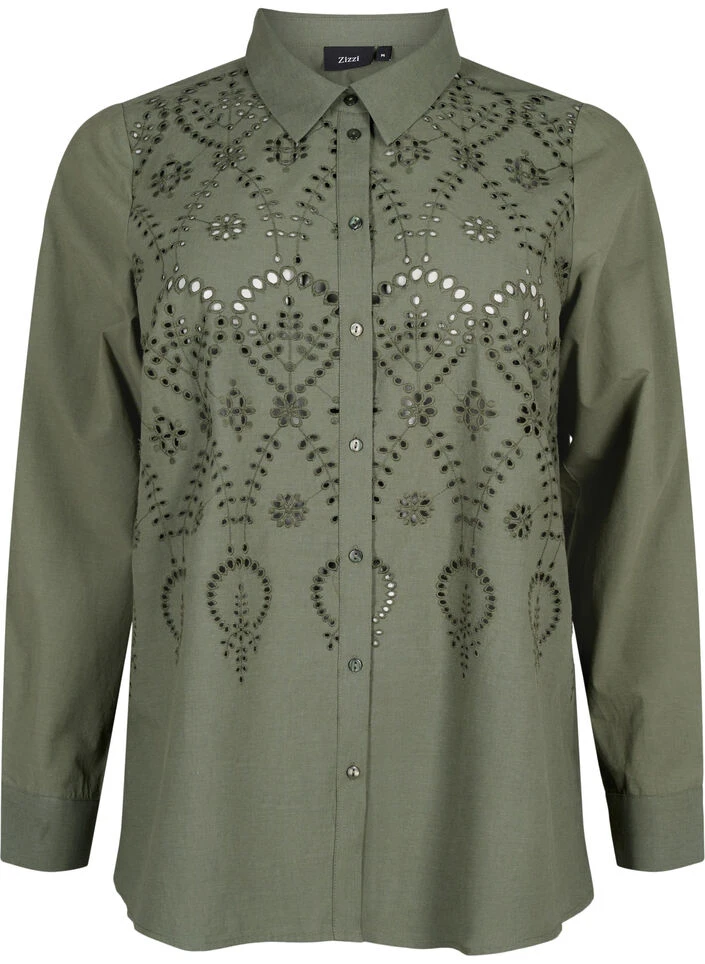 Shirt in 100% cotton with beautiful anglaise embroidery on the front. The shirt has a regular fit with side slits, a classic shirt collar and button closure.