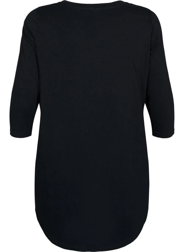 Soft t-shirt in a cotton fabric with 50% organic cotton. The t-shirt has a simple design with a text print on the front, a crew neckline and 3/4-length sleeves