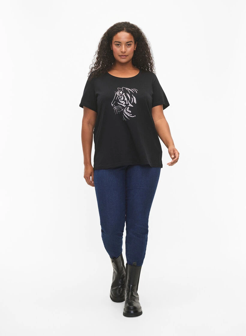 Short-sleeved T-shirt with a nice print on the chest. The T-shirt is designed with a regular fit and made from a soft cotton blend with 50% organic cotton.
