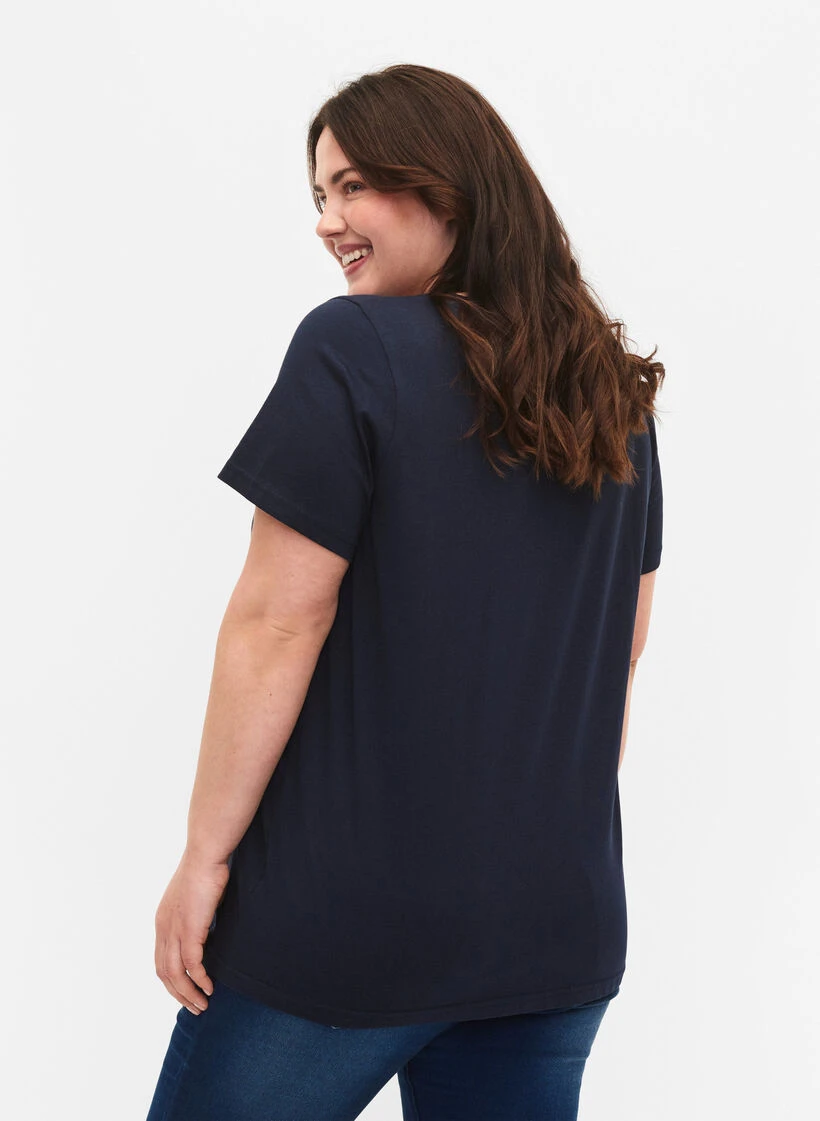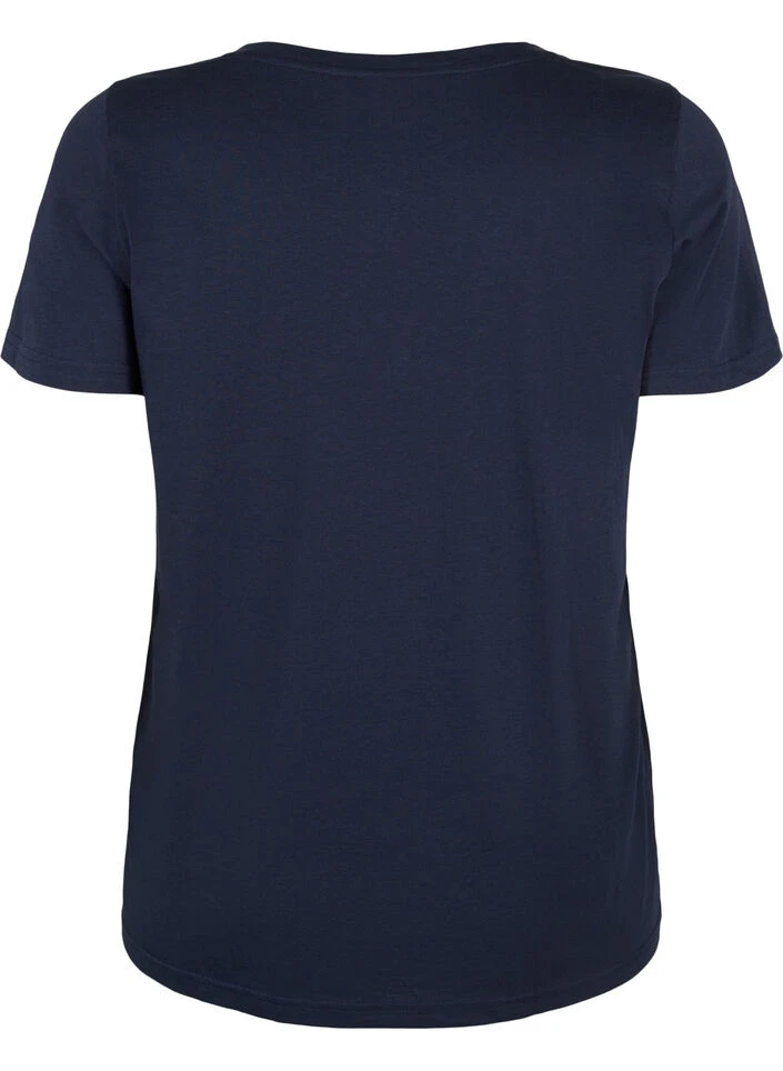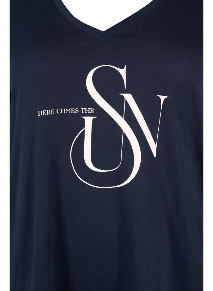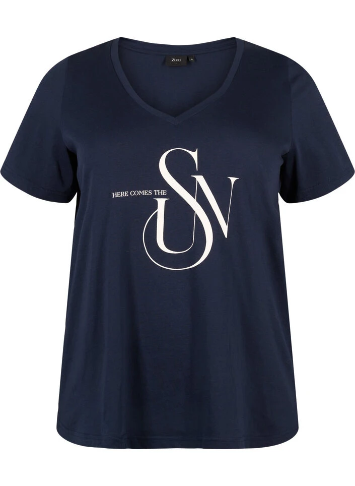 Short-sleeved t-shirt in a soft cotton quality with 50% organic cotton. The t-shirt has a v-neckline and print at the front.