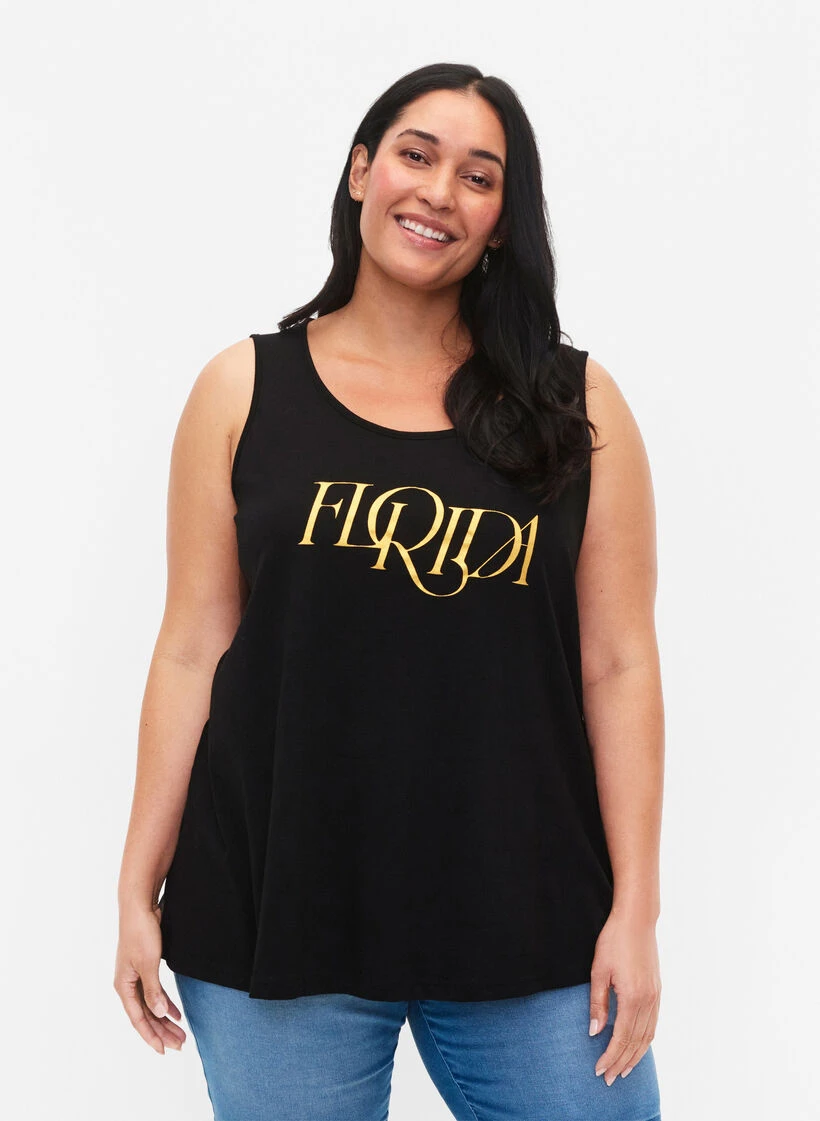 Sleeveless top with round neckline. The top is made in a comfortable cotton with 50% organic cotton, and has a loose-fitting a-shape.