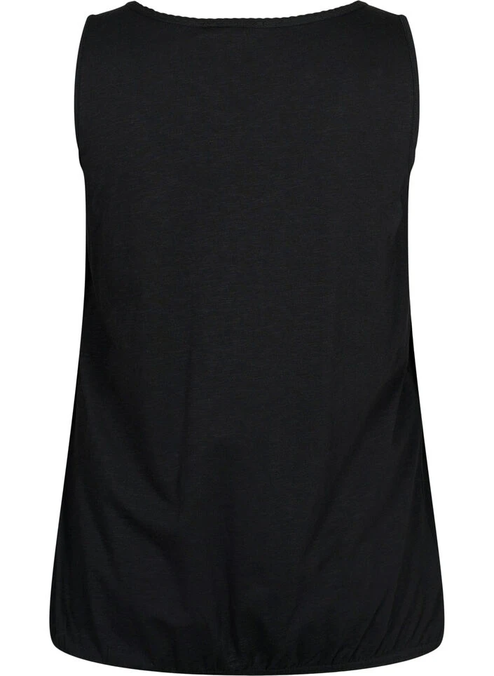 Sleeveless top in cotton, which has a round neckline with lace trim and a loose fit with elasticated bottom.