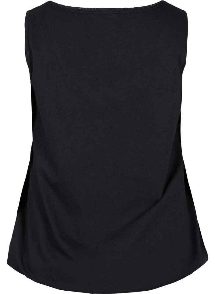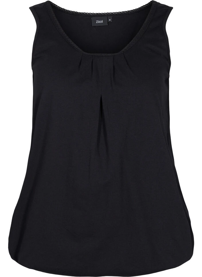 Simple top made from a cotton blend with a loose fit. The top has a rounded neckline with stylish lace trim and an elasticated hem.
