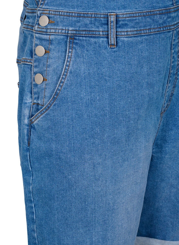 Super trendy denim overalls in soft cotton material with short legs. These overalls have adjustable suspenders with clasp fastening and side button closure.