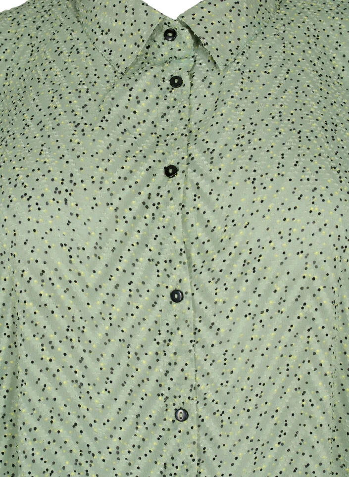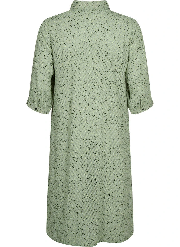Shirt dress with 3/4 sleeves, side slit and full button closure. The dress is made in a light quality with structure and a nice dotted design without lining.