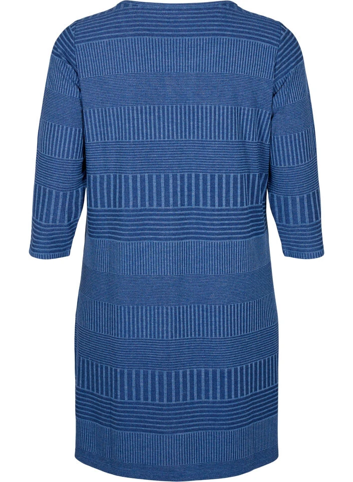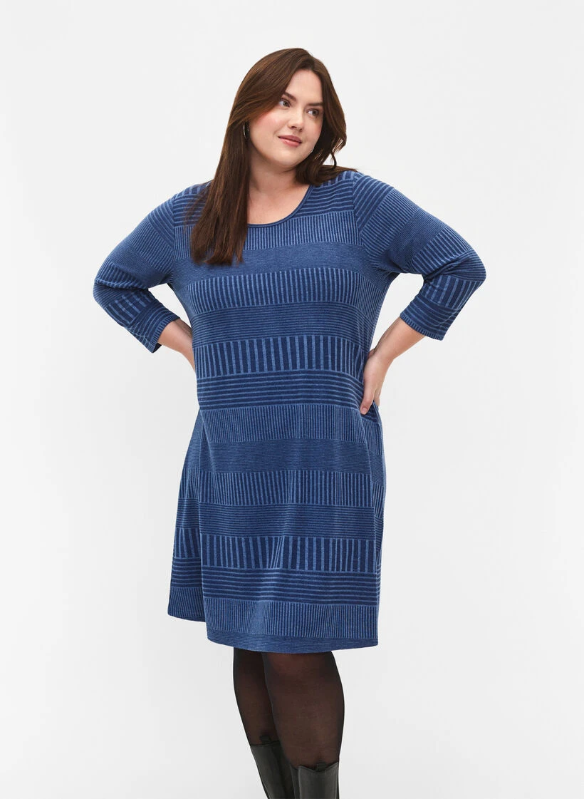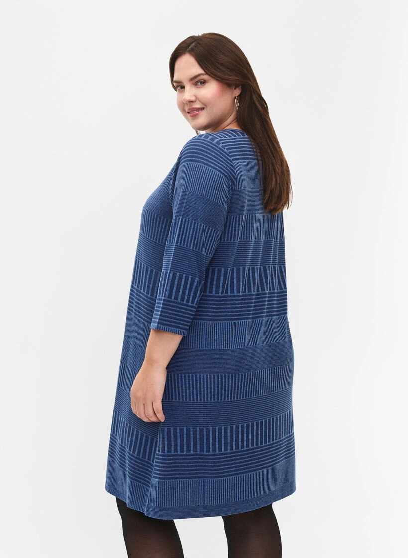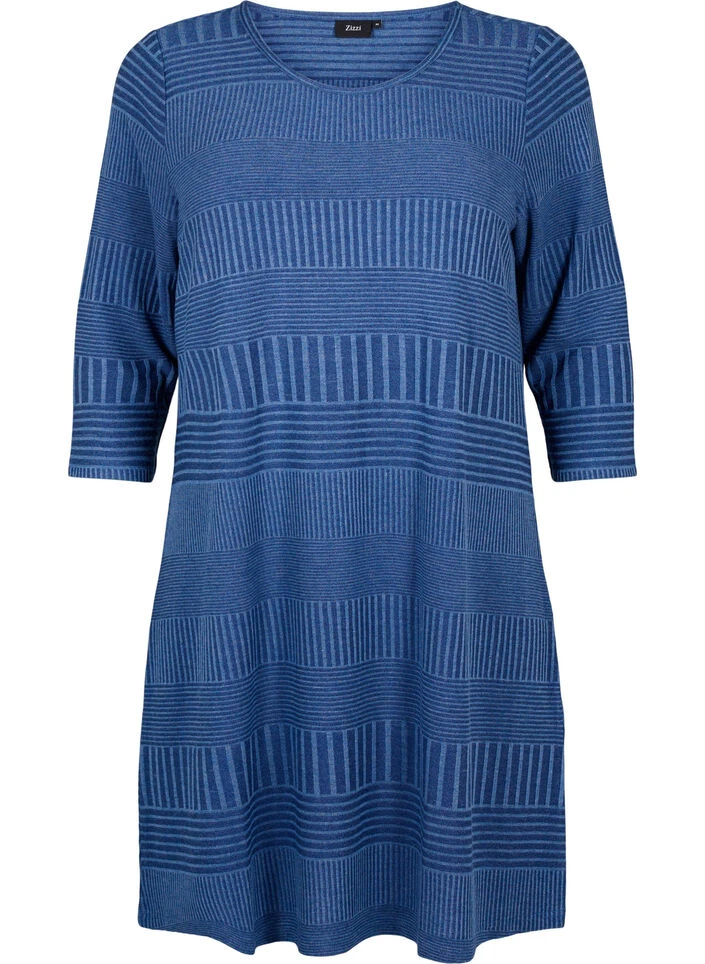 Dress with 3/4 sleeves and round neckline. The dress has a beautiful striped pattern and is made from a soft and stretchy material.