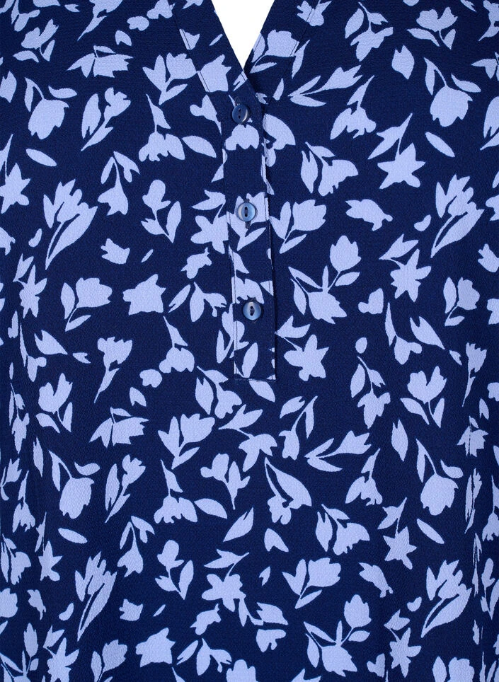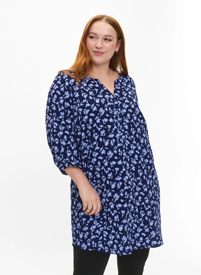 Tunic made from 55% recycled polyester with a nice all-over print. The tunic is designed with 3/4 sleeves and a small V-neck with a short button fastening.