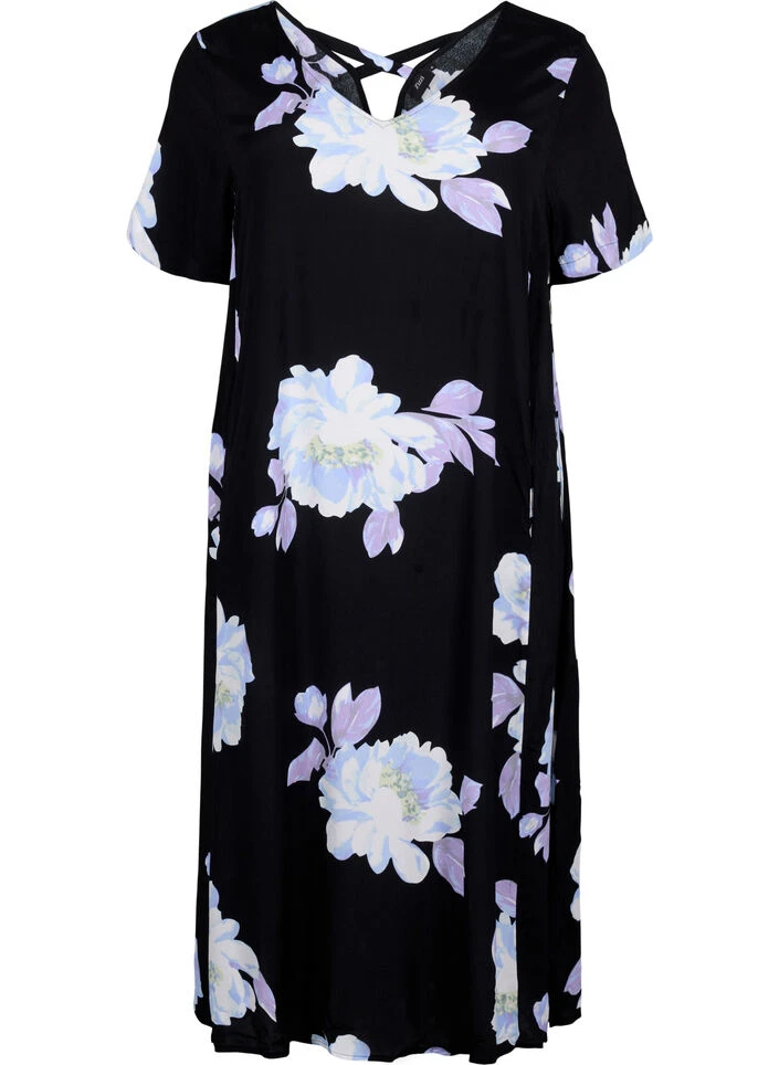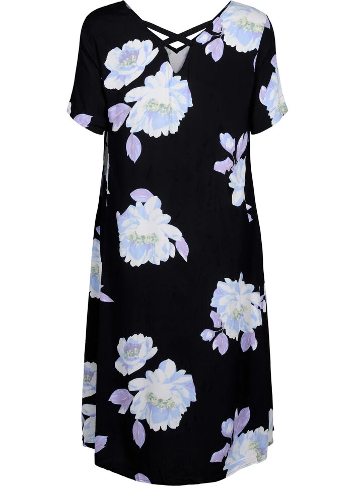Feminine midi dress with a nice all-over floral print in a nice viscose fabric with 50% LENZING™ ECOVERO™ Viscose. The dress has a loose and feminine a-shape with short sleeves, v-neckline at neck and back and a nice crossed back detail.