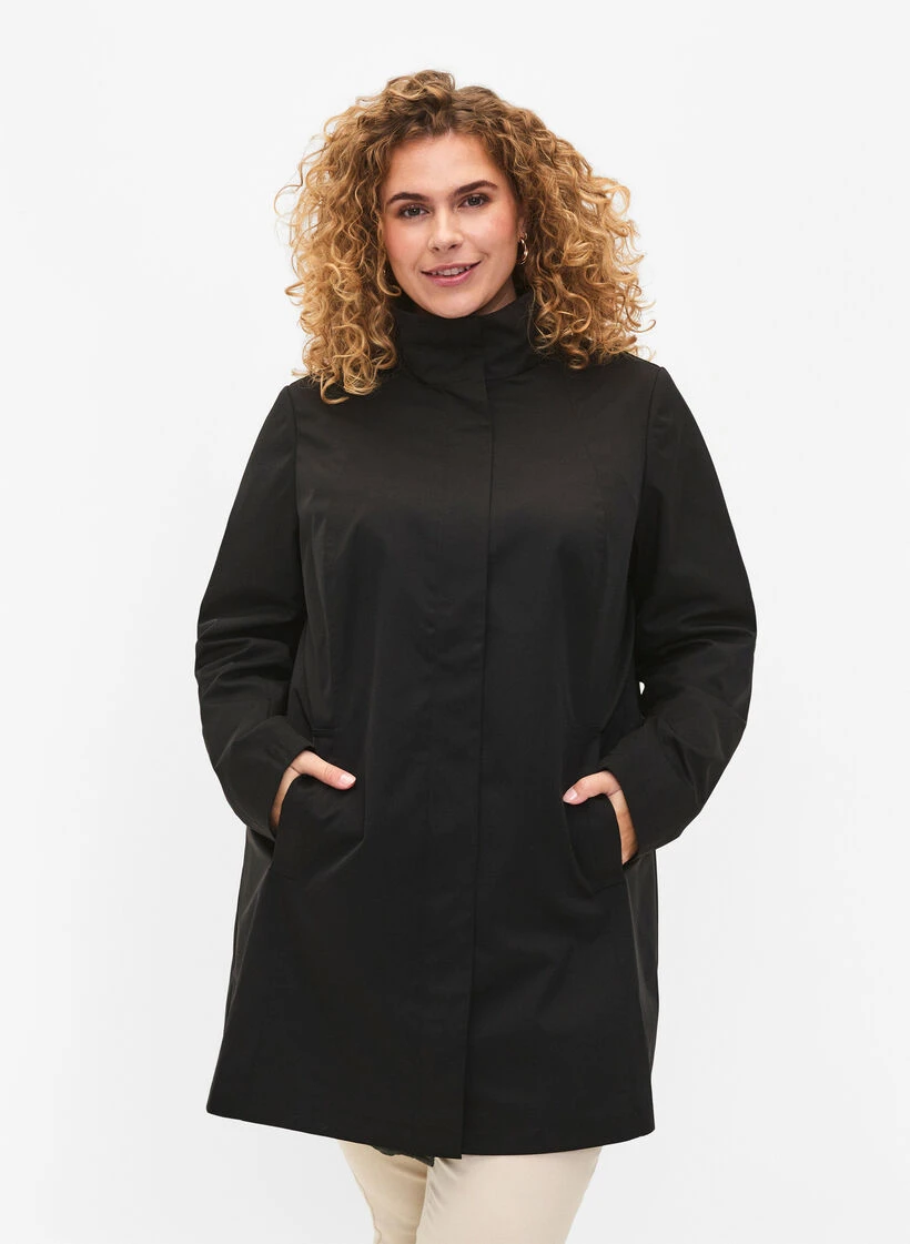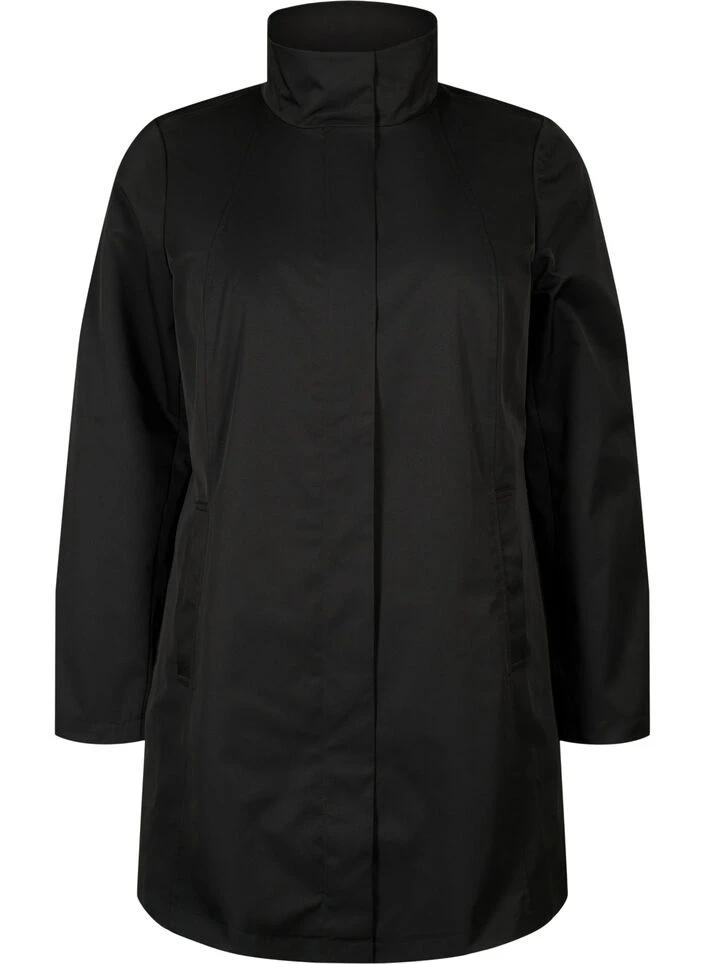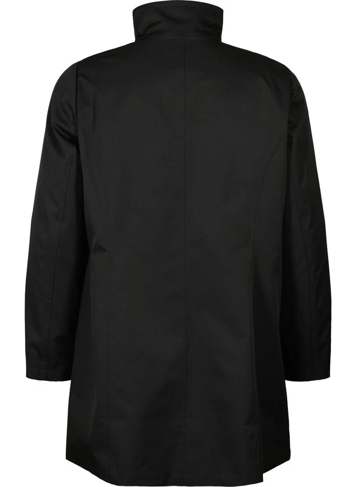 Elegant jacket with a high collar and a hidden two-way zipper. The jacket has a classic design with hidden button closures on the collar, and side pockets and a comfortable regular fit.