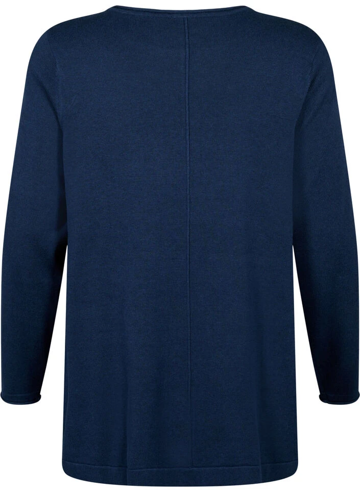 Simple knitted blouse in a soft and comfortable blend of cotton and viscose. The knitted blouse has a round neckline, long sleeves and decorative ribbed edges.