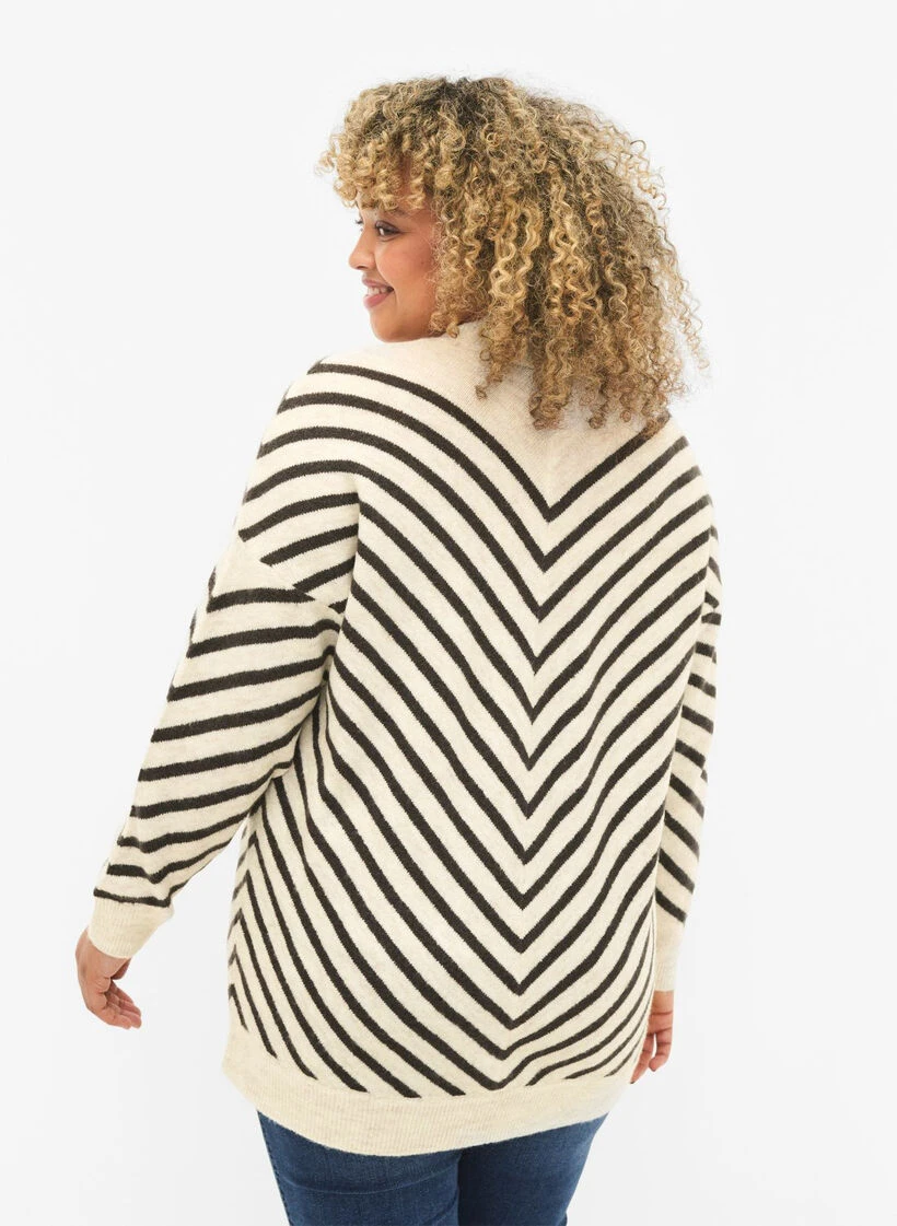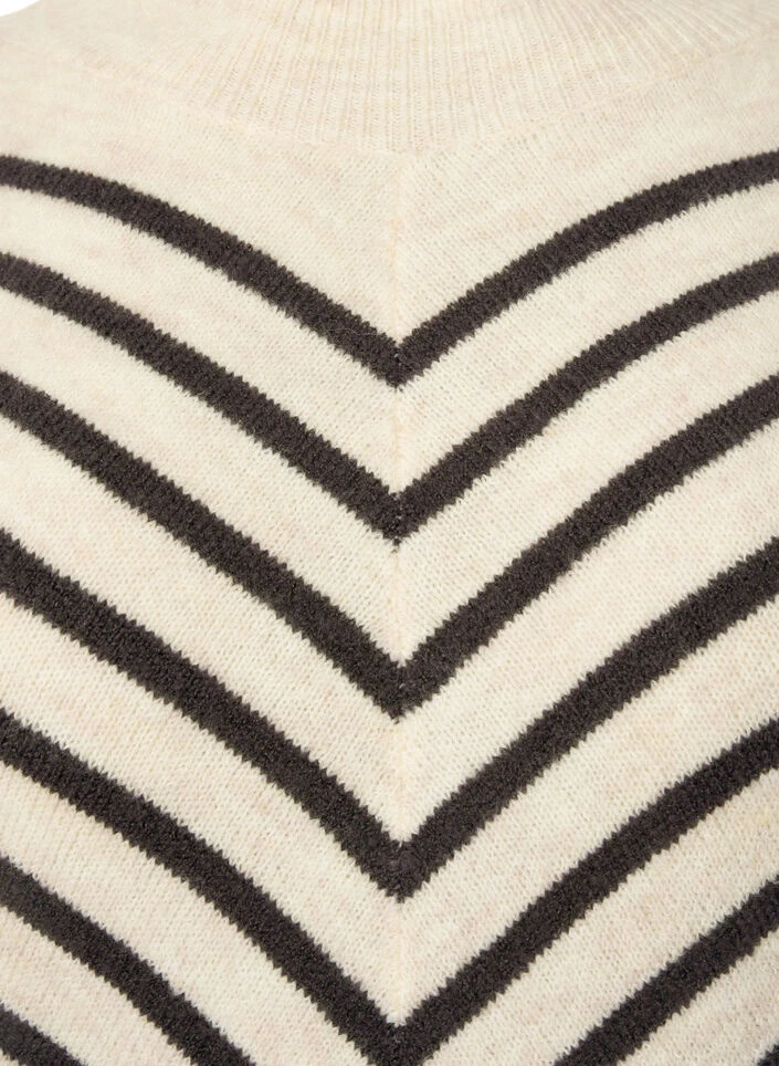 Soft knit sweater with a beautiful diagonal striped design. The sweater features wide ribbed cuffs on the sleeves and hem and a loose fit.