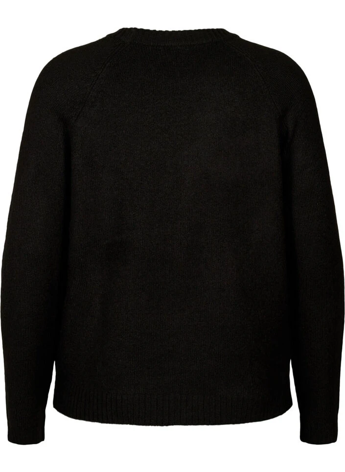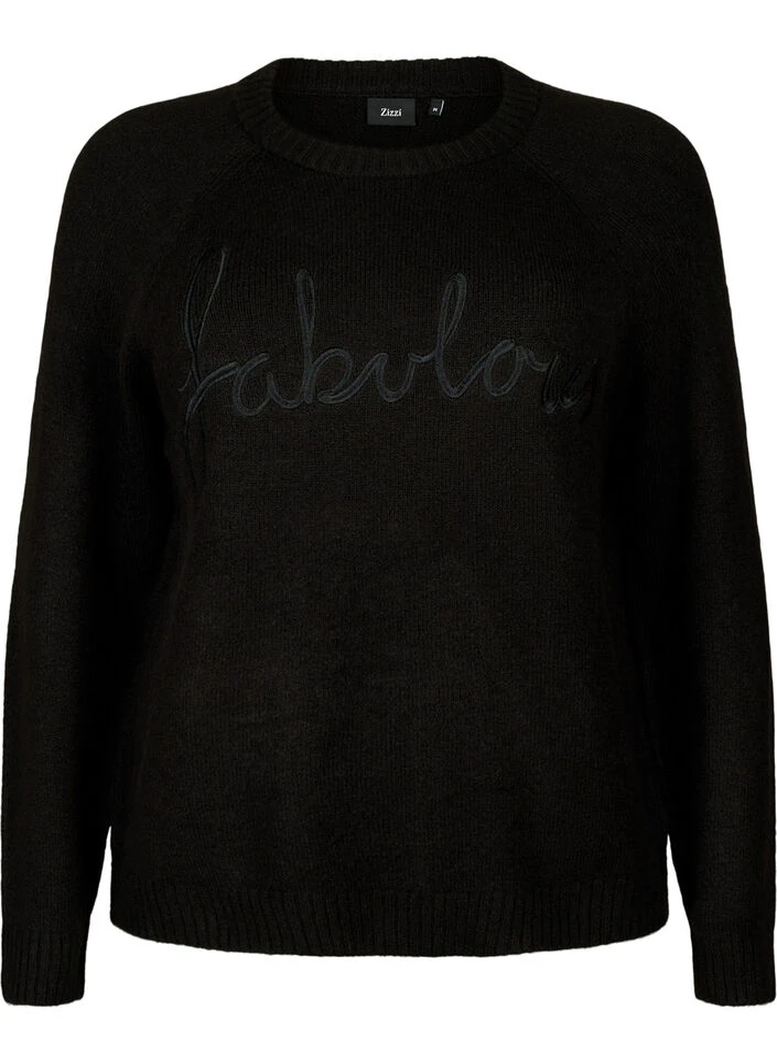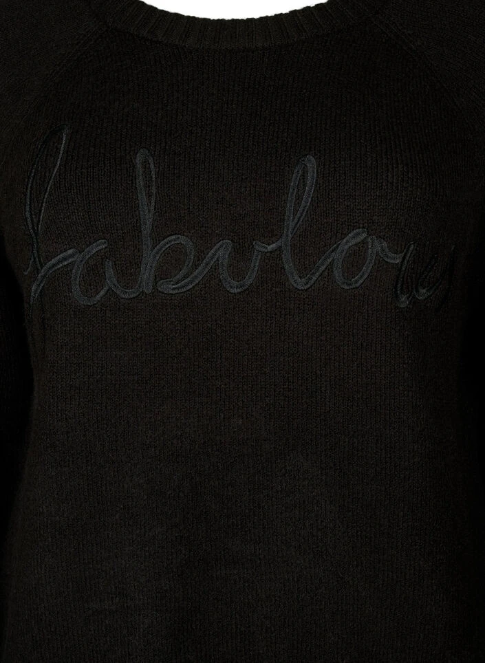 This knitted blouse has a regular fit and is designed with embroidered text across the chest. The blouse has long sleeves and a round neckline, as well as wide ribbing on the sleeve cuffs and hem.