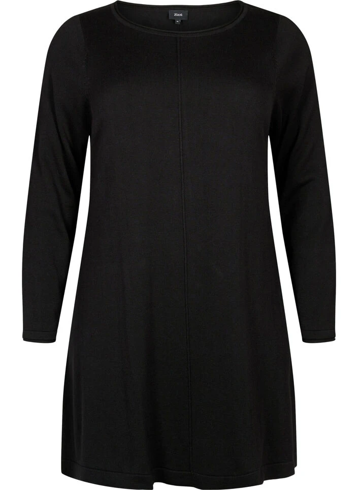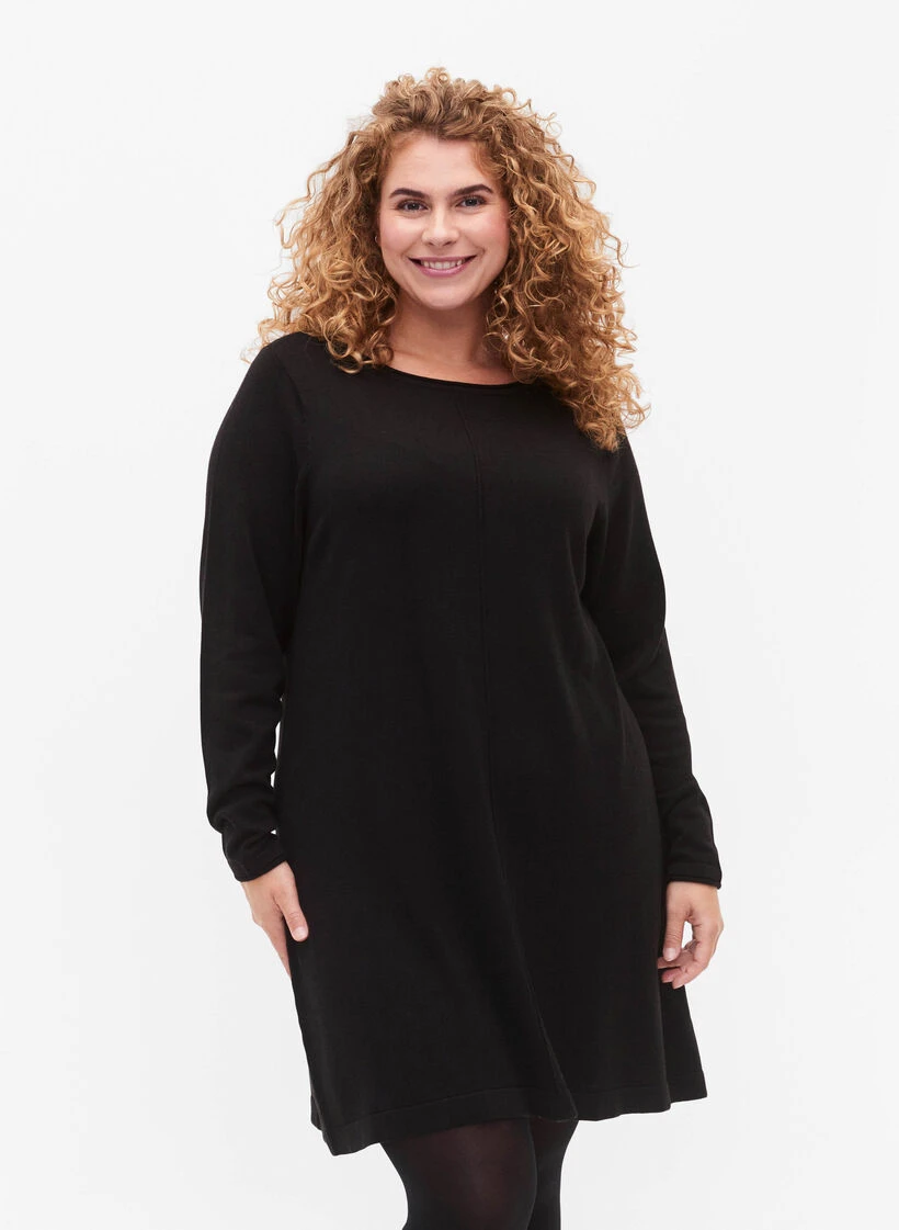 Simple knitted dress in a soft and comfortable blend of cotton and viscose. The dress has a loose fit with a round neck and long sleeves.
