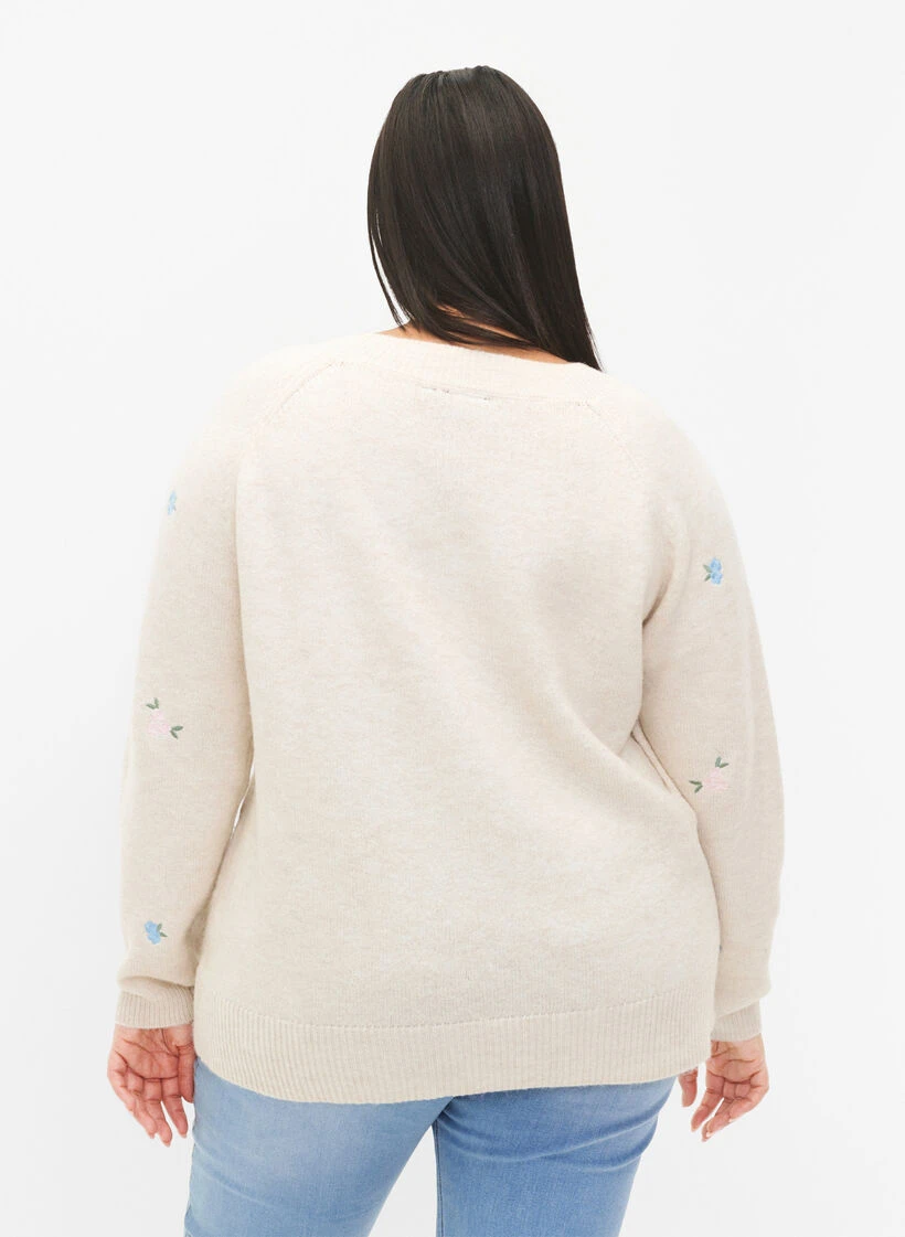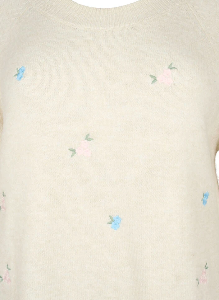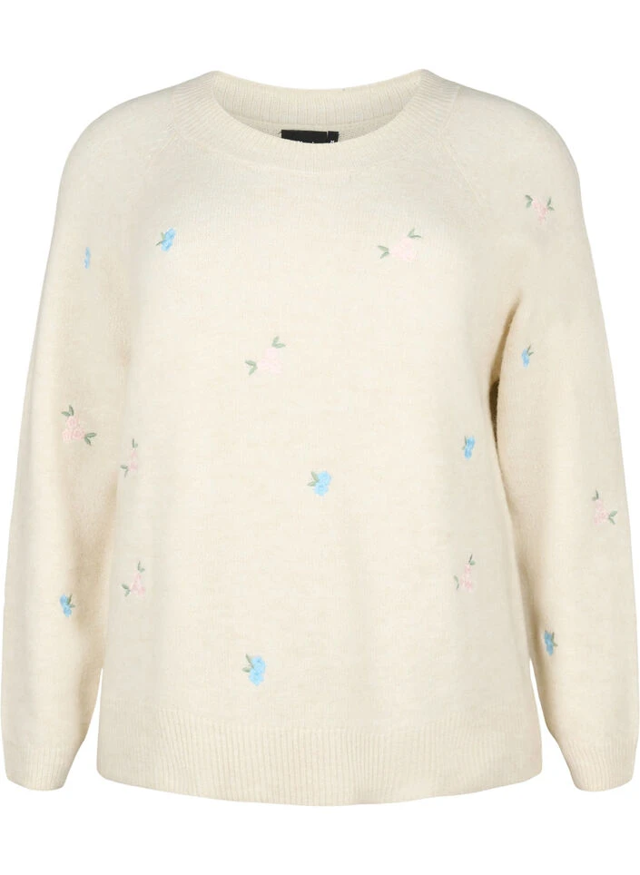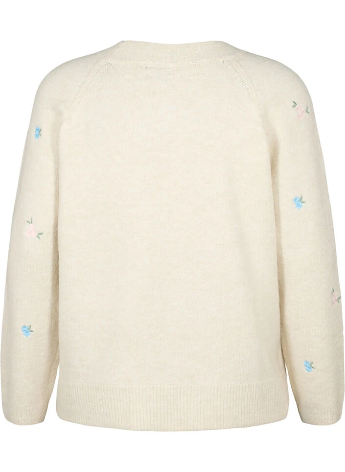 Long-sleeved pullover in a soft and comfortable material with a regular fit. The knitted pullover is decorated with fine embroidered flowers and has ribbed cuffs on the sleeves, neckline and hem.