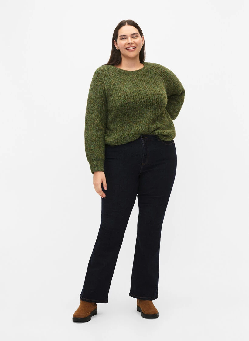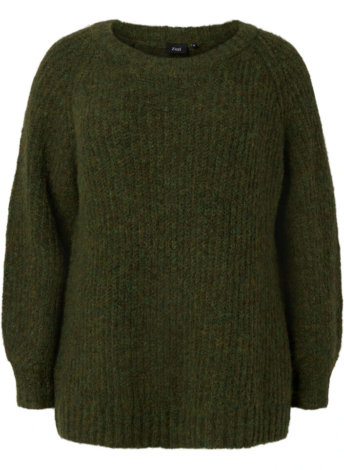 Comfortable knitted sweater made from a warm material mix with wool. The knitted sweater has a timeless design with raglan sleeves and wide ribbed cuffs and hem.