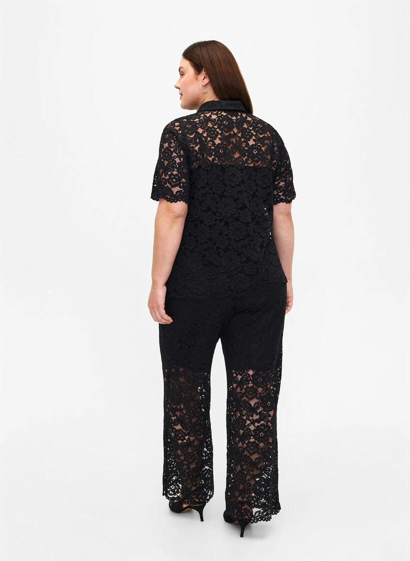 Feminine pants in a beautiful and stretchy lace fabric. The pants have an elastic waist, side pockets and are lined from the waist to the knee.