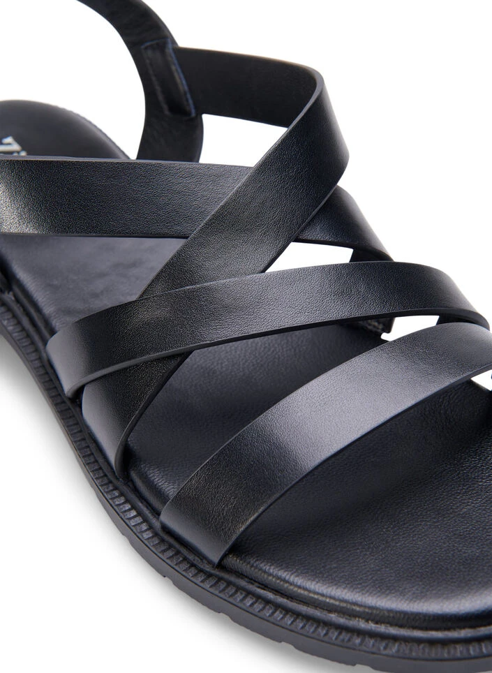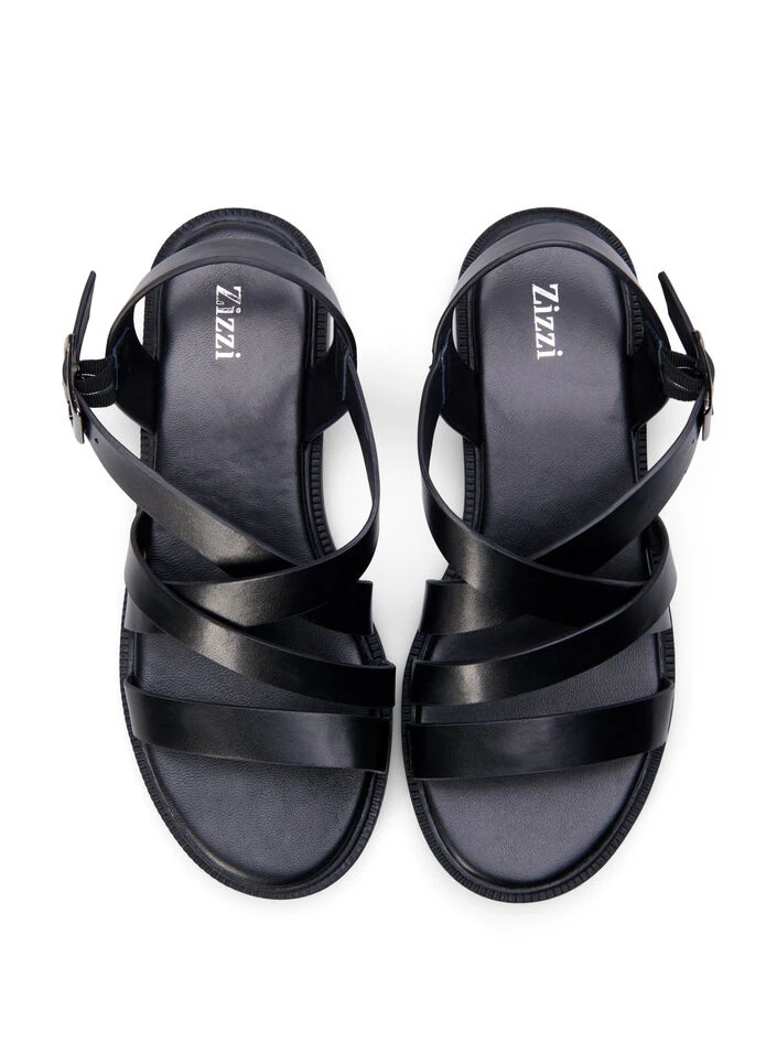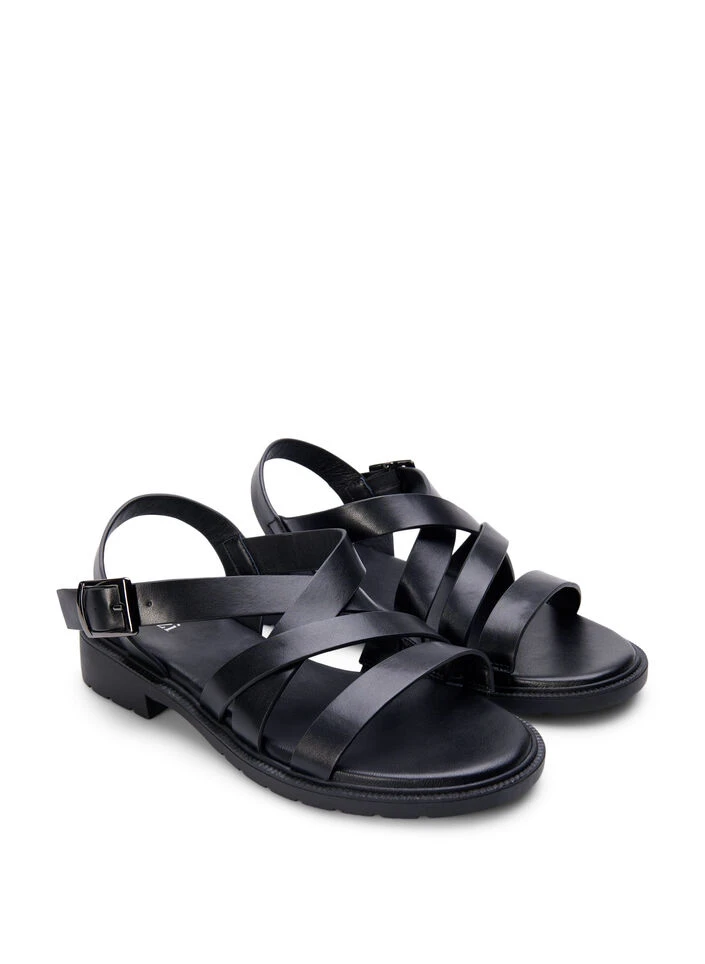 Summer sandal in leather with a wide fit. The sandal has an adjustable buckle, and all straps are designed with elastic pieces on the inside to give way and ensure the most optimal fit for each foot.