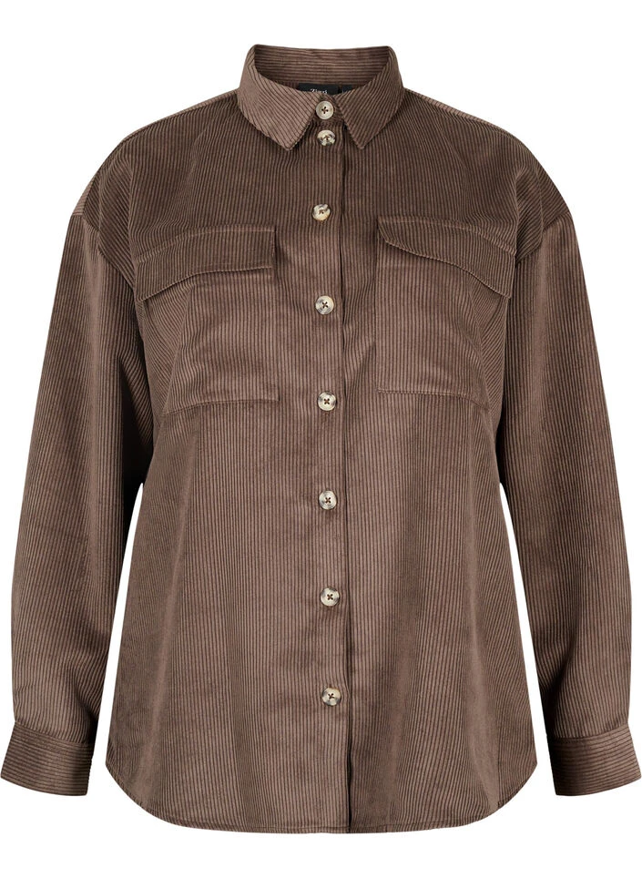 Shirt in soft velvet material with decorative chest pockets. The shirt is designed with a regular fit, classic shirt collar and fastens with nice buttons.