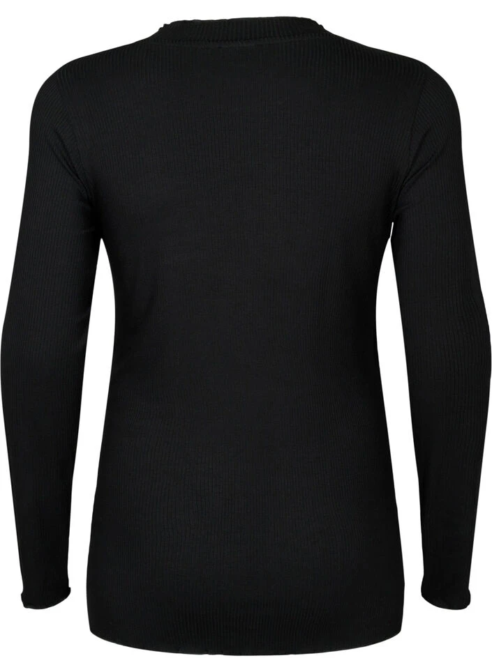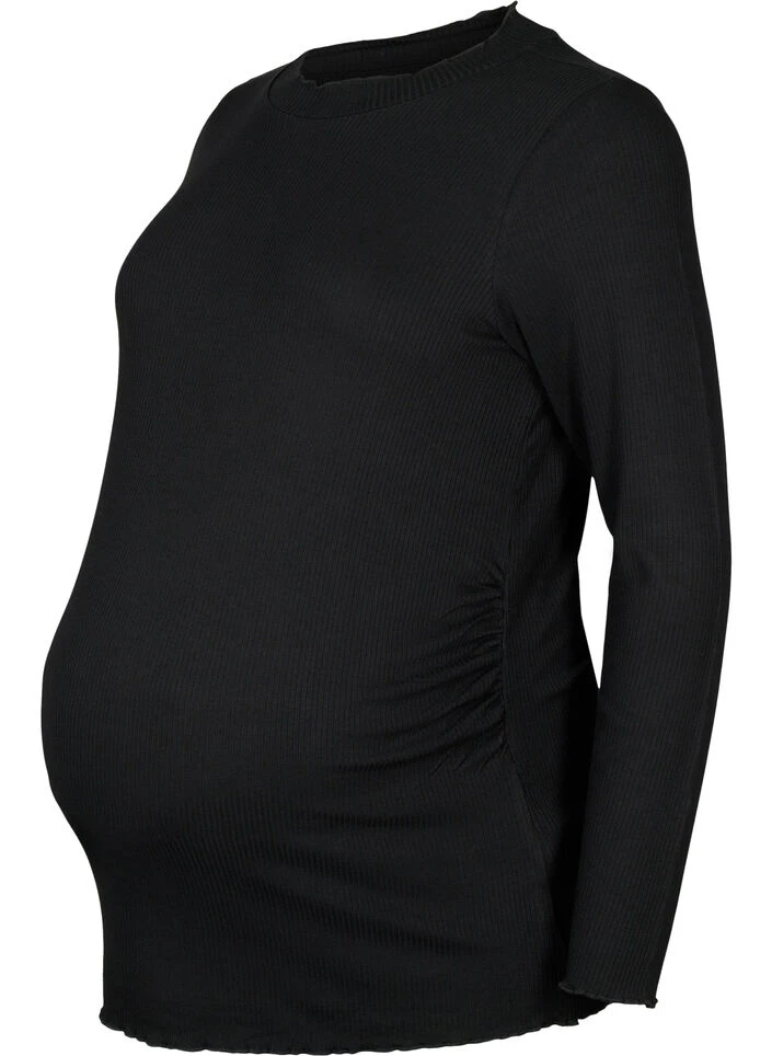 Long sleeve maternity blouse with turtleneck. The blouse is made from a ribbed viscose quality with stretch, ensuring a soft and stretchy material that adapts to the growing belly.
