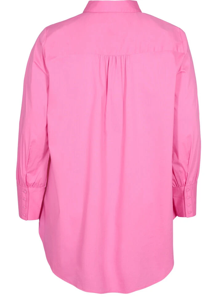 Classic, solid-coloured shirt with long sleeves and high cuffs that create a light balloon effect. The shirt features button-through fastening on the front, a shirt classic shirt collar and small back pleats, which provide a lovely touch.