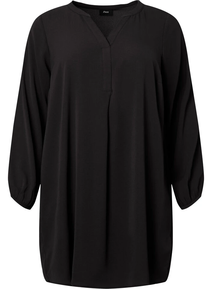 Loose-fitting dress with a V-neck and long sleeves with elastic cuffs. The dress is made from a comfortable material with 55% recycled polyester.
