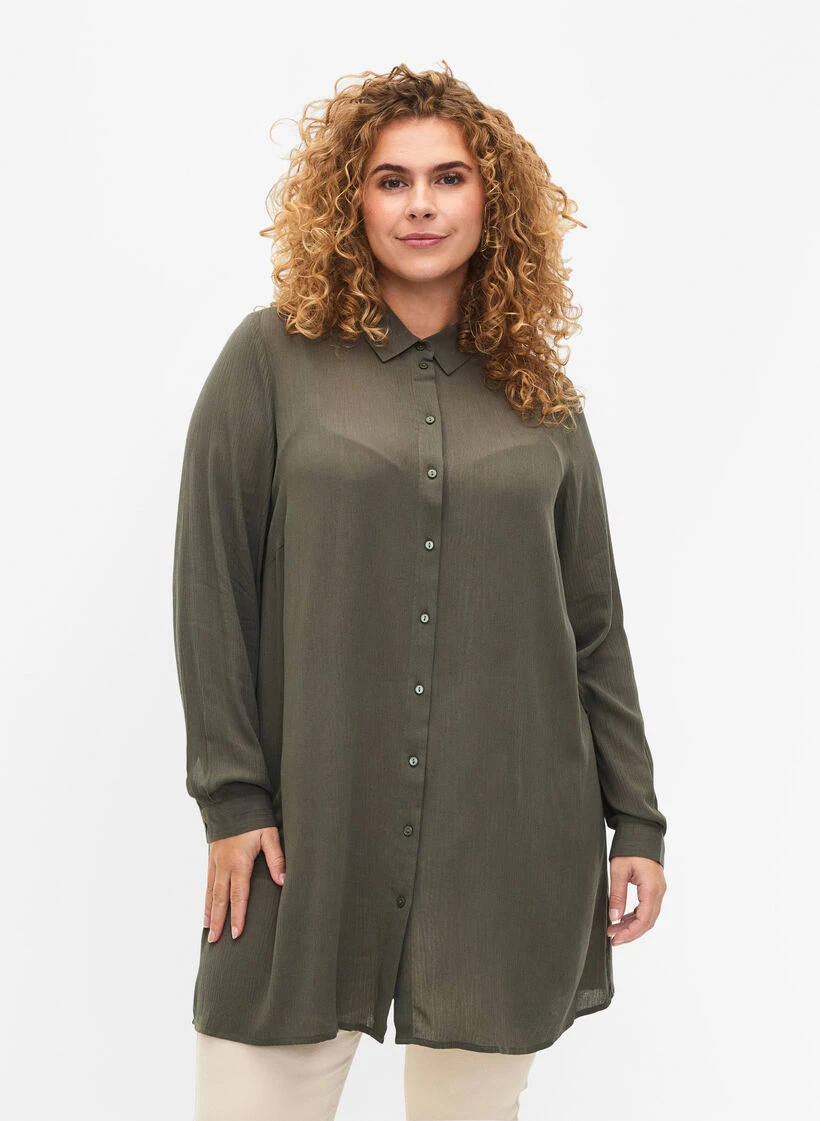 Long shirt with a timeless design with a classic collar and buttons all the way up the front. The shirt has a loose fit with an A-line and is made of 100% LENZING™ ECOVERO™ Viscose.