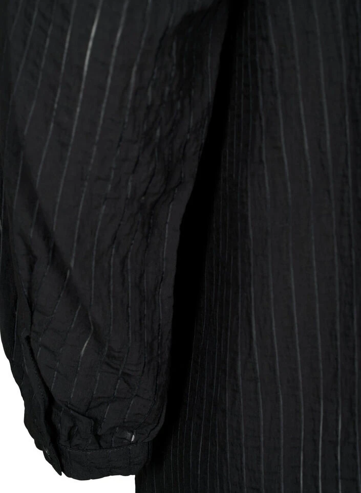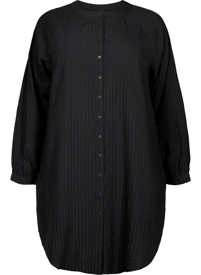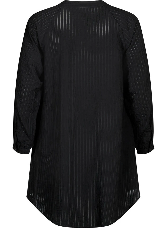Long shirt with button closure and a round neckline. The shirt is made in a soft viscose quality, with a striped structure in the fabric.
