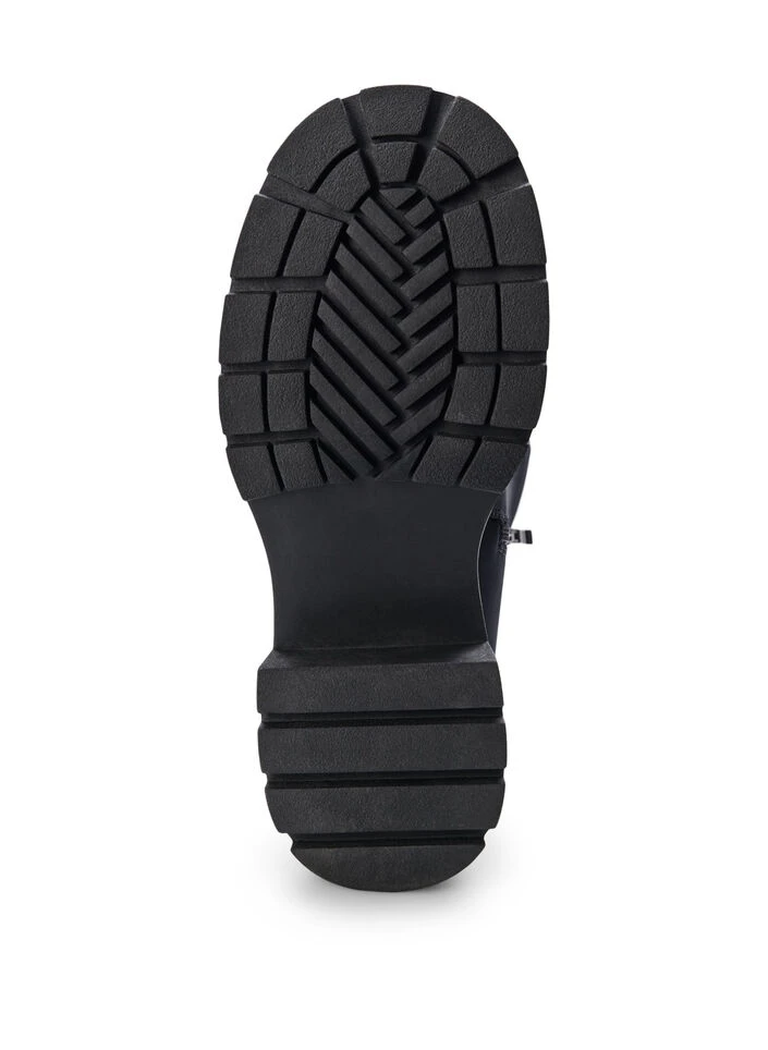 High shaft boot with a chunky sole designed for a wide fit. The upper part of the boot is made of an elastic material, which makes it incredibly stretchy and therefore it fits most legs. At the same time, the elastic also makes the boot fit close to the leg, which is a great look, for example with tights, leggings and skirts.