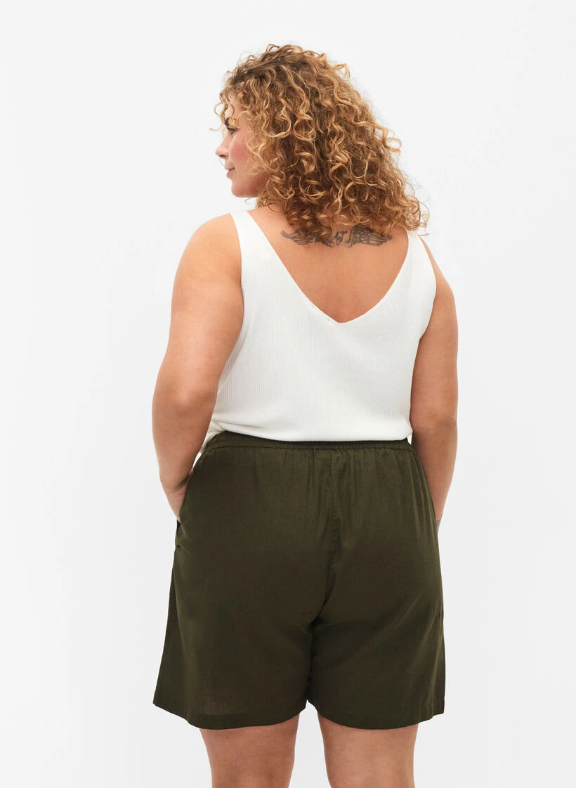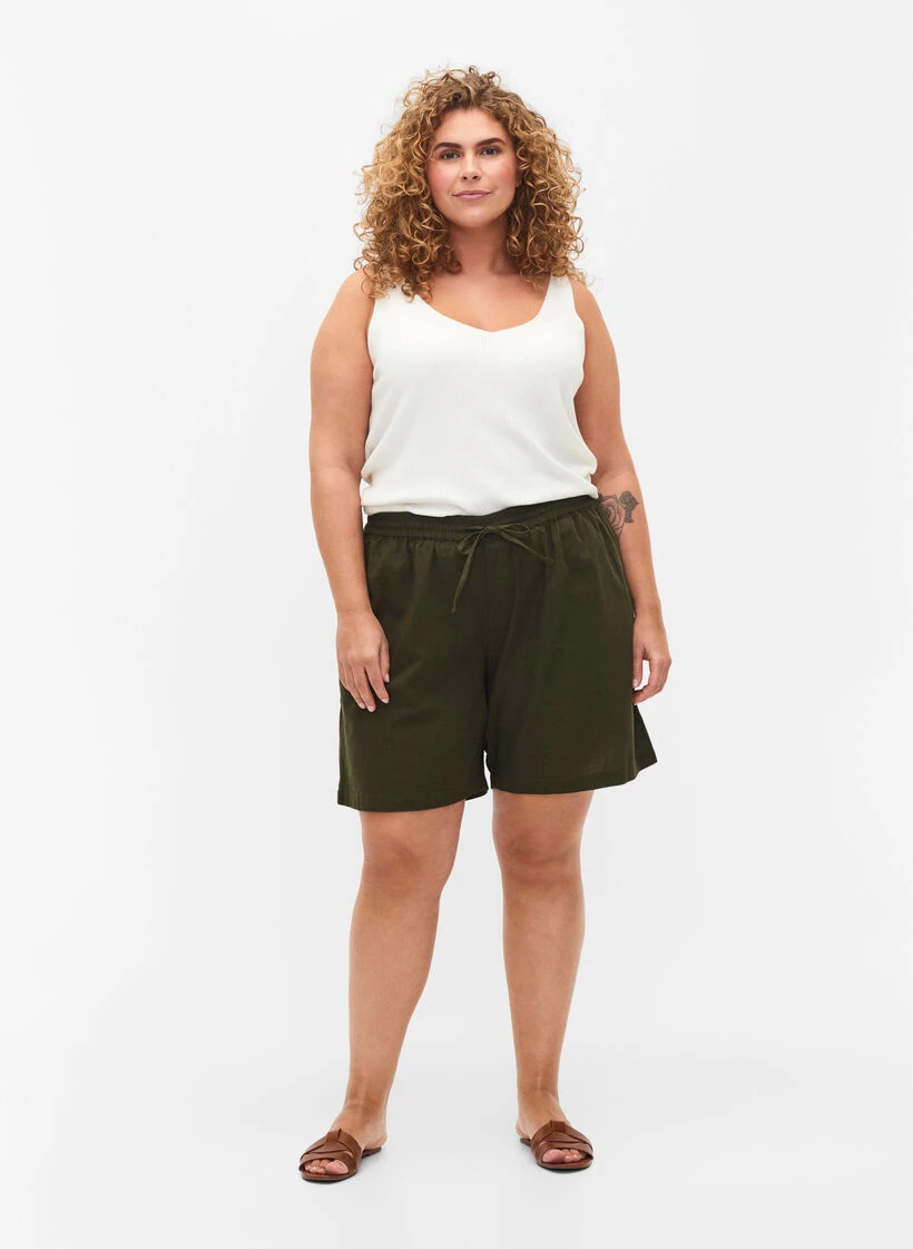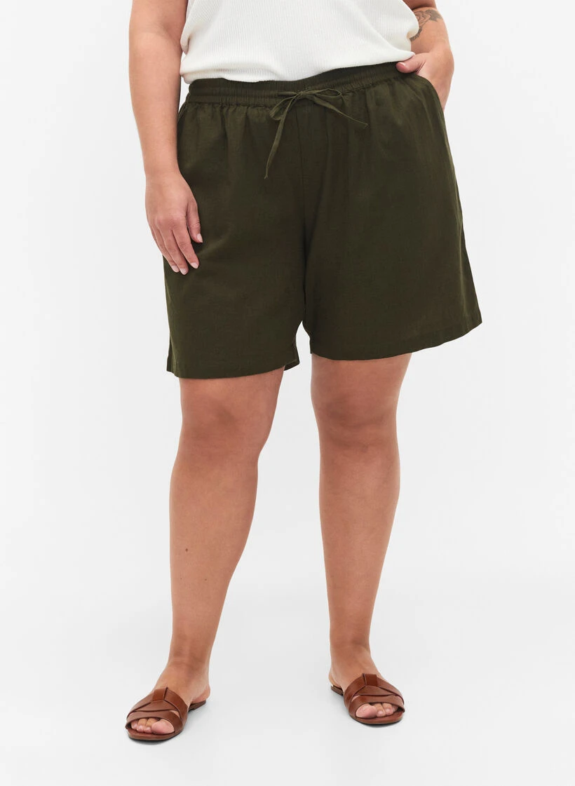 Loose and comfortable shorts in a soft cotton blend with linen. They have side pockets and an elasticated drawstring waist.