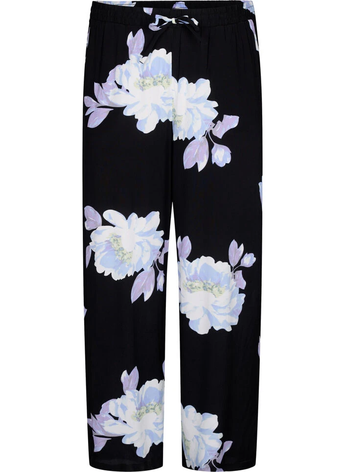 Loose-fitting trousers in a fine printed design, which have elastic and drawstring waist and are made in a light viscose fabric with 50% LENZING™ ECOVERO™ Viscose.