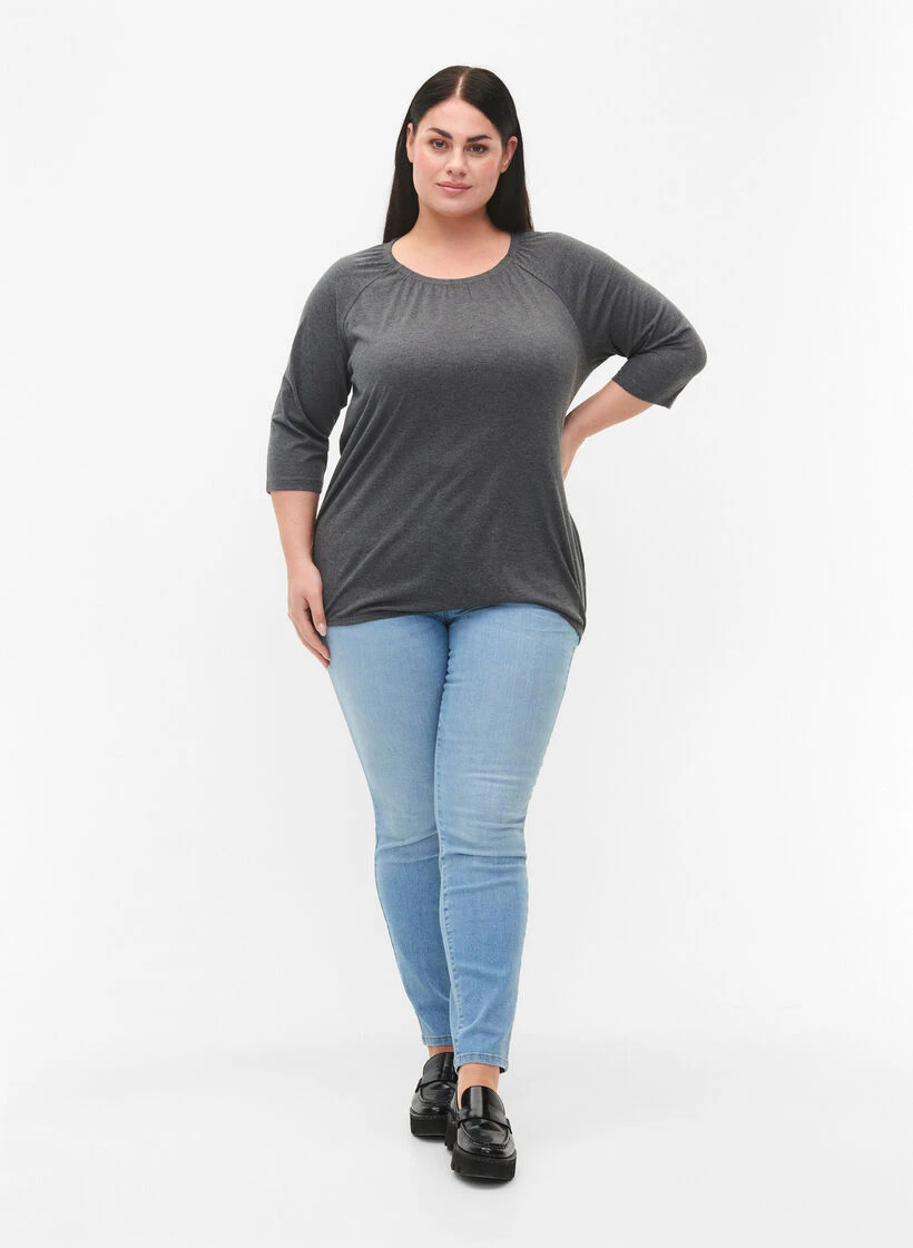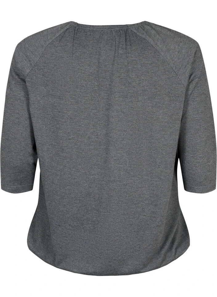 Blouse with 3/4 sleeves, elastic edge at the bottom and neckline, creating a loose and comfortable fit. The blouse features a mottled design and is made from a soft and comfortable fabric.