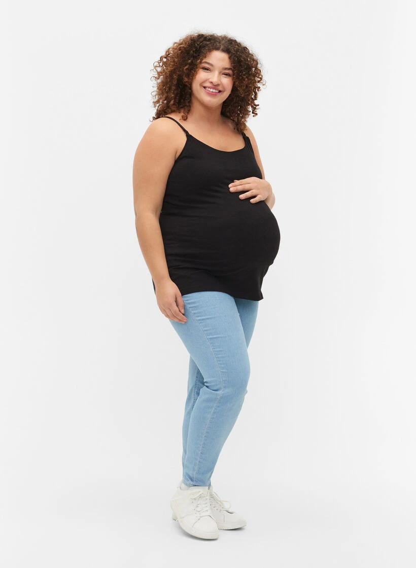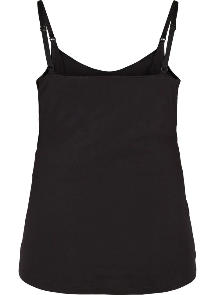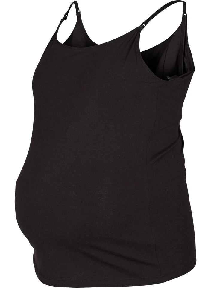 Soft pregnancy top with breastfeeding function, made in a gorgeous and comfortable cotton fabric. It has a simple and plain-coloured design and has thin adjustable shoulder straps with a functional opening that makes it easier to breastfeed.