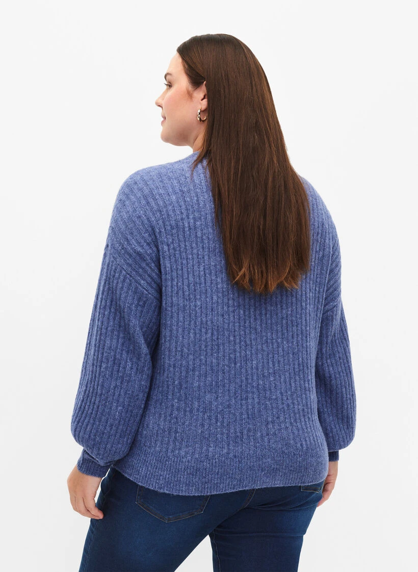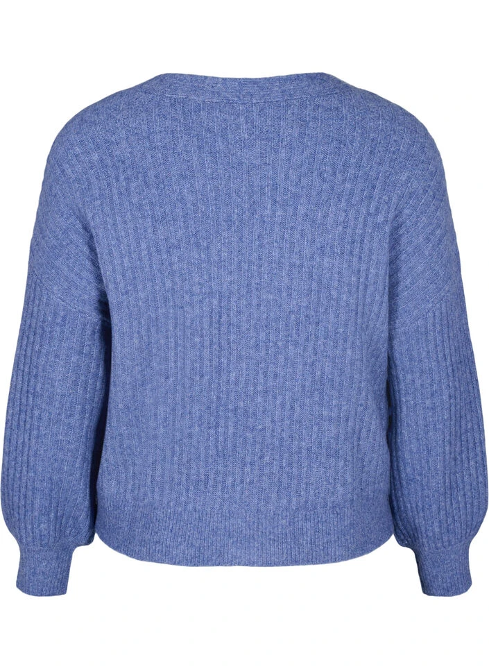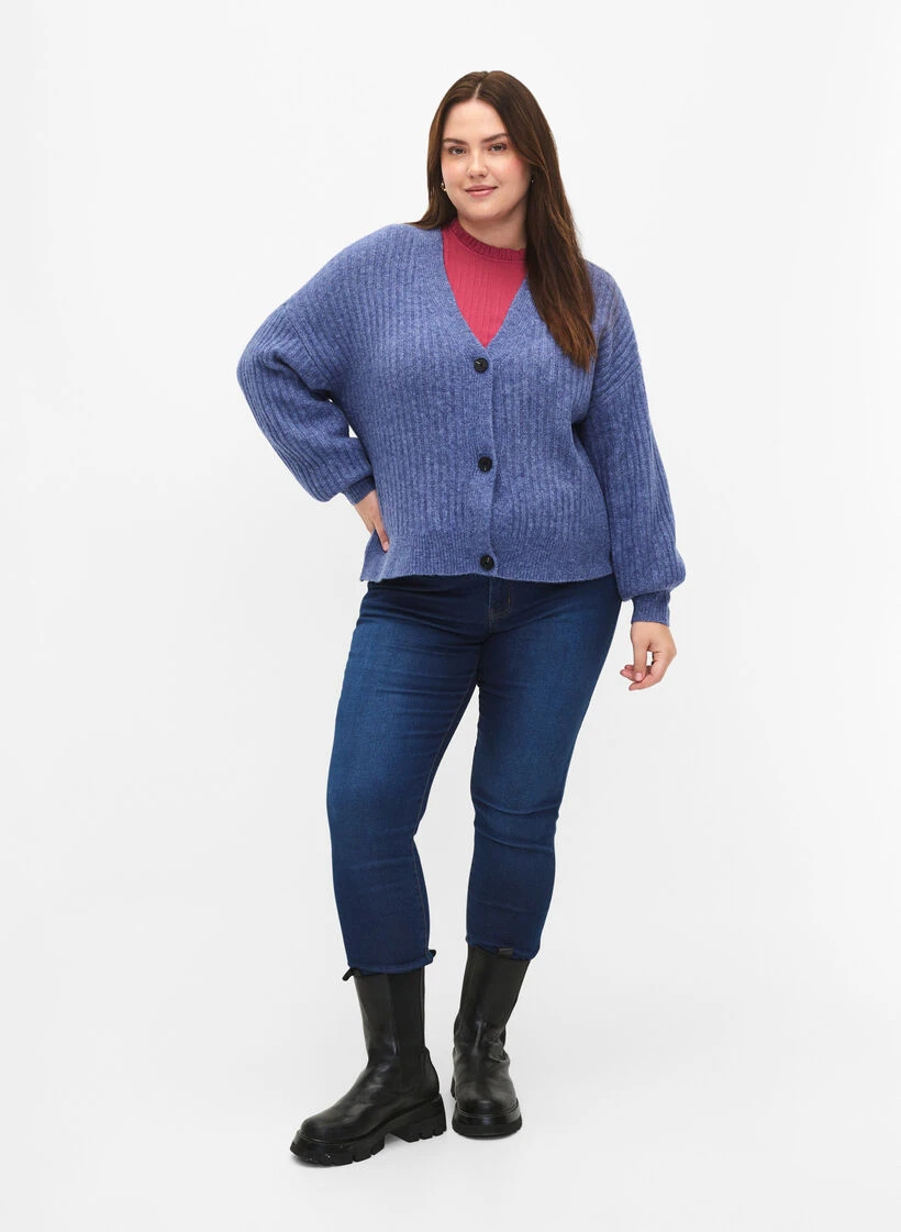 Ribbed cardigan in a melange design with contrasting colored buttons. The cardigan has long sleeves, a v-neck and is made from a material blend with 10% wool.