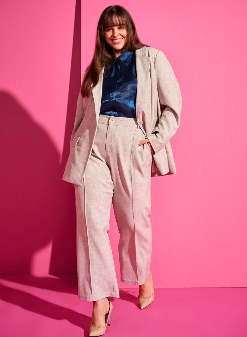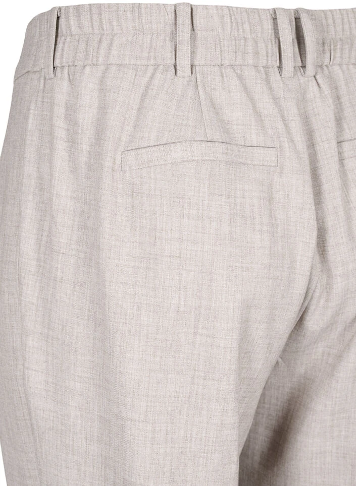 Nice trousers with a loose fit and a melange design. The trousers fasten with a button and zipper and have an elastic waist at the back, belt loops and back pockets without functional pocket lining.