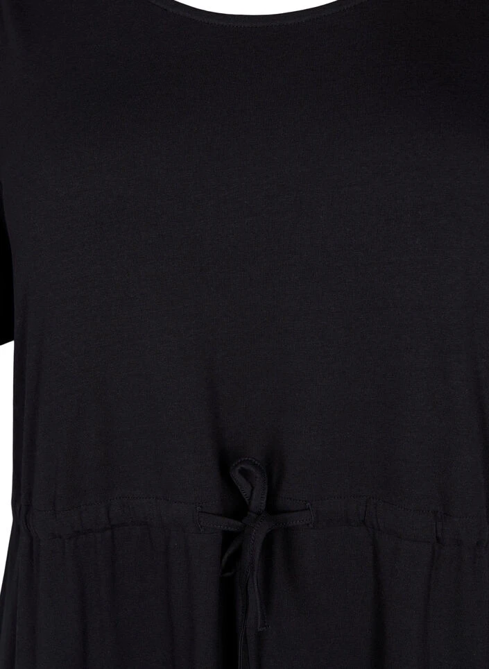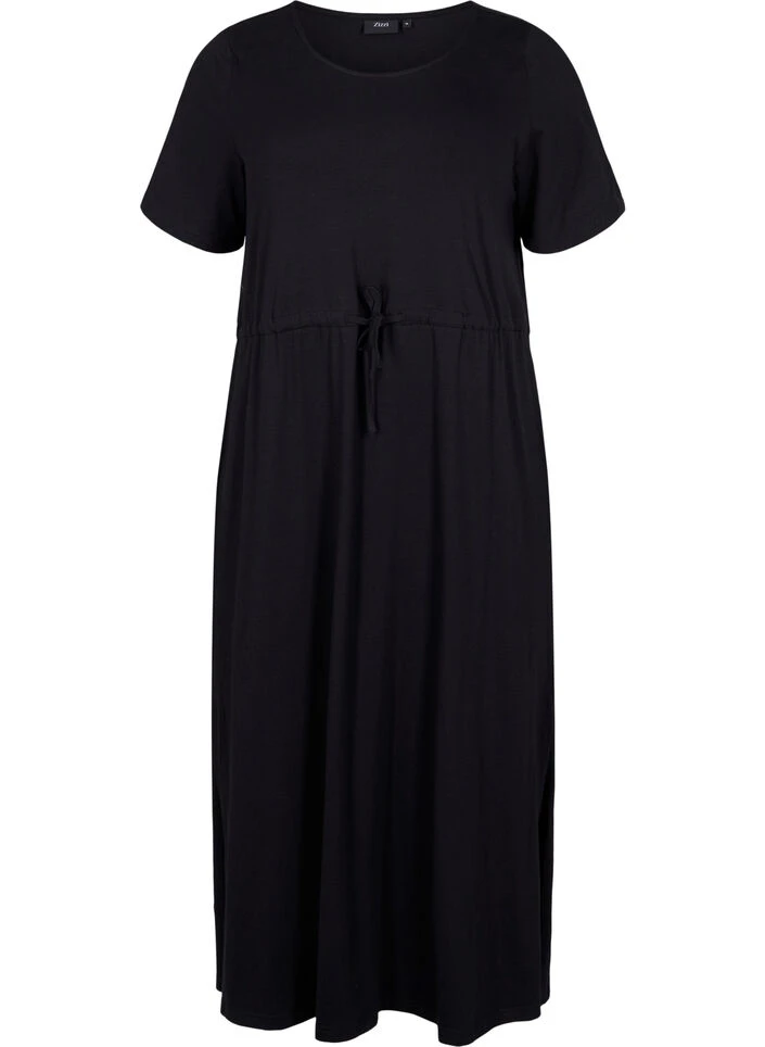 Midi dress with short sleeves, round neck and slit in the side. It has a loose fit with tie waist, side pockets and is in a comfortable and stretchy cotton fabric.
