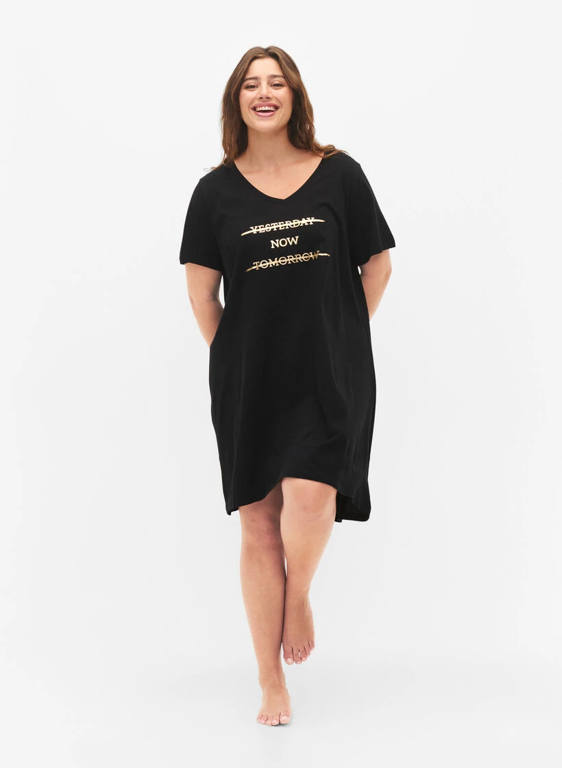 Comfortable V-neck nightgown with short sleeves and a loose and comfortable fit with an A-line design. The nightgown is made from 100% organic cotton with a simple print.