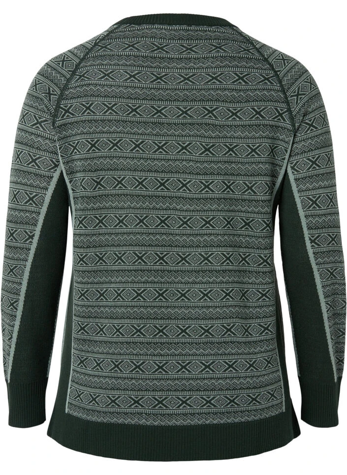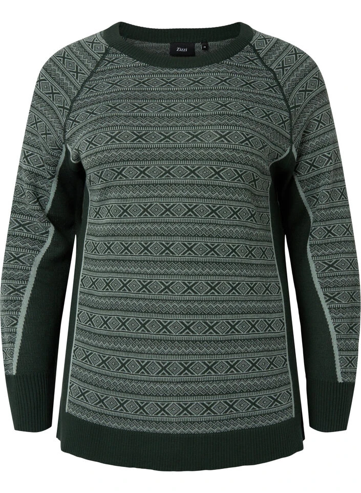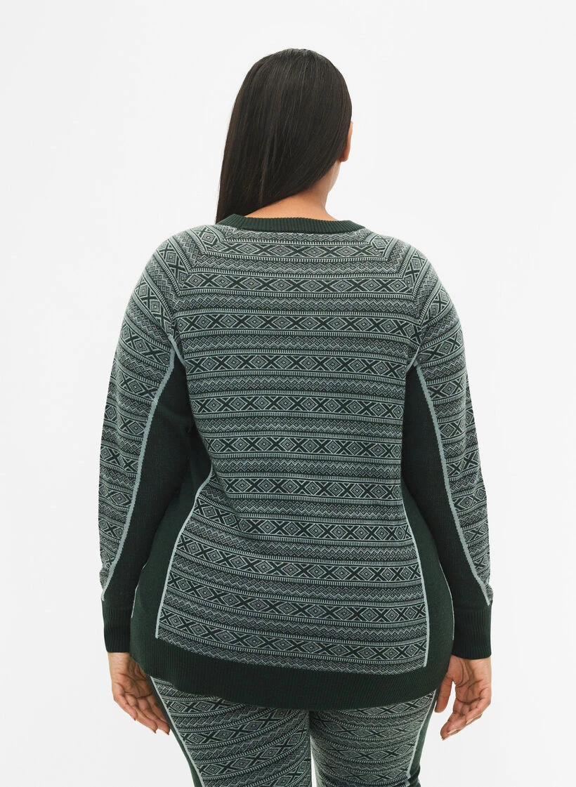 Patterned ski undershirt with long sleeves and a round neckline, made from a comfortable wool blend that is both insulates and wicks away perspiration.
