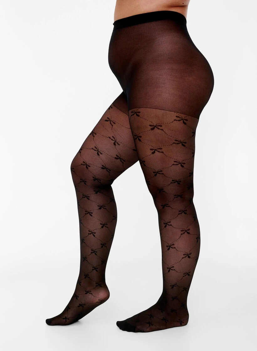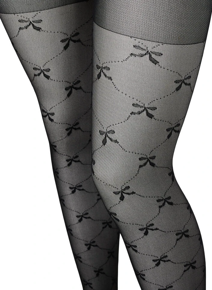 25 denier tights with a feminine bow pattern.
