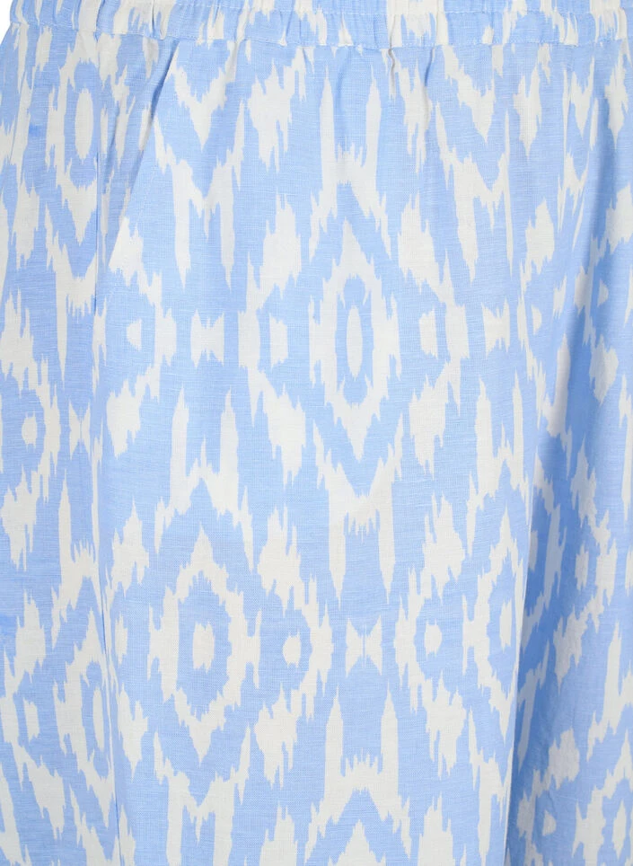 Loose-fitting pants with an elastic waistband and side pockets. These pants are designed with a beautiful pattern and are made from a lovely mix of viscose, cotton and linen, and together they create a fabric that is both lightweight and breathable.
