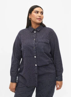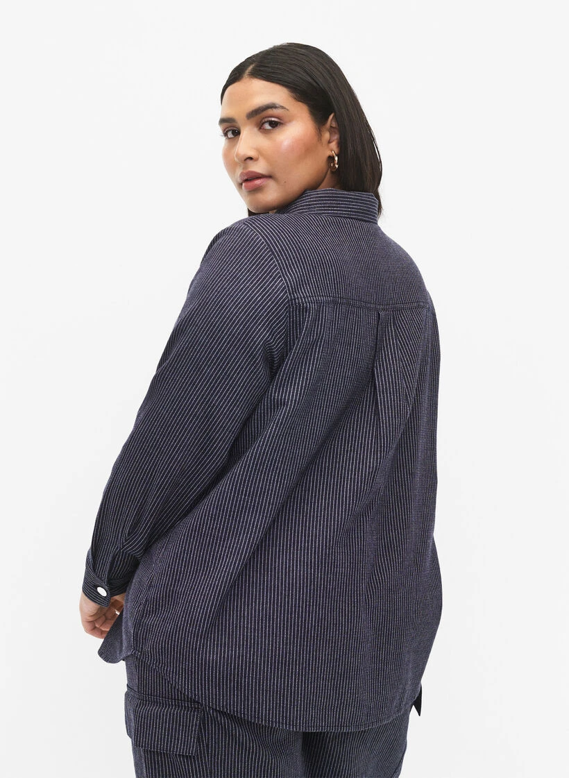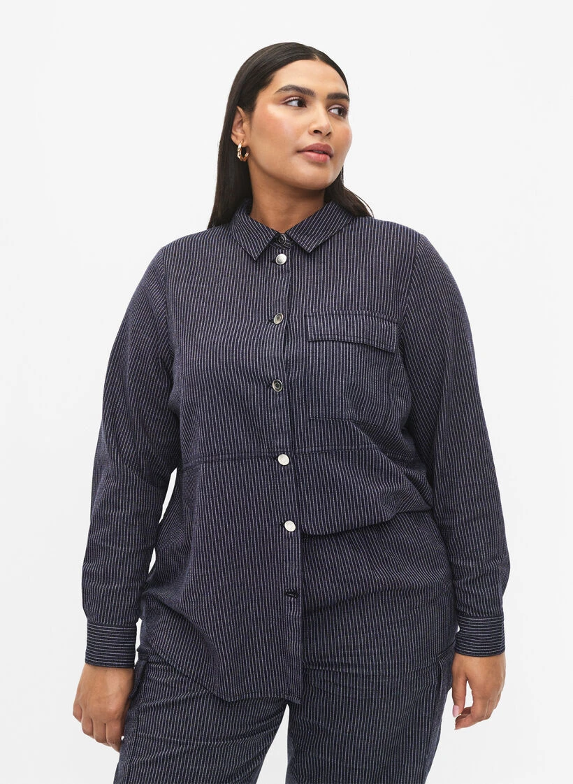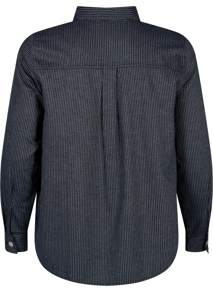Shirt made of 100% cotton with a beautiful pinstripe design. The shirt has a chest pocket, long sleeves with cuffs, collar and rounded hem at the bottom.